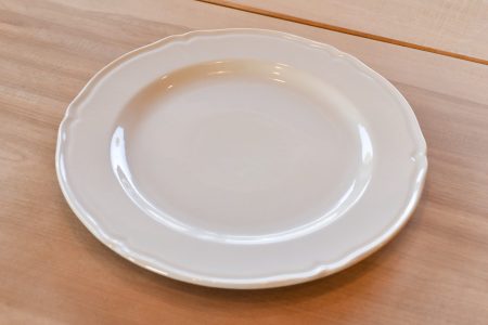 このサタルニアシリーズはイタリアのレストランで長年愛用されてきたお皿です。直径31cmと大きめですが、今回のようにメイン料理の盛り付けからワンプレート料理も簡単にでき、シンプルな白一色で料理を引き立たせやすく、盛り付けの幅が広がるため非常に使いやすいのが特徴です。
