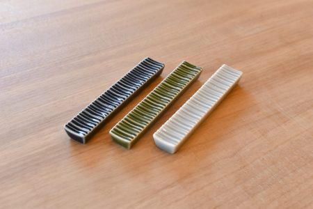 美しい縞模様が特徴の商品。食卓に適度な色味と華やかさを演出してくれます。表面の凹凸により箸が転がりにくく、機能面も申し分なしの素敵なカトラリーレストです。