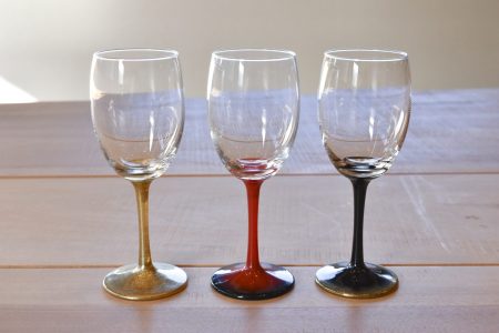 ただのワイングラスではございません。ステムとプレートの部分に漆塗装を施してあり、職人の技術がふんだんに盛り込まれた商品です。漆の特徴的な深みのある色が食卓を華やかに彩ります。