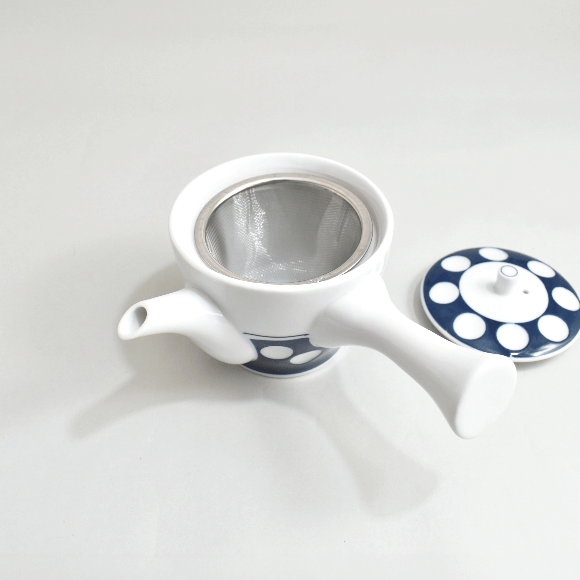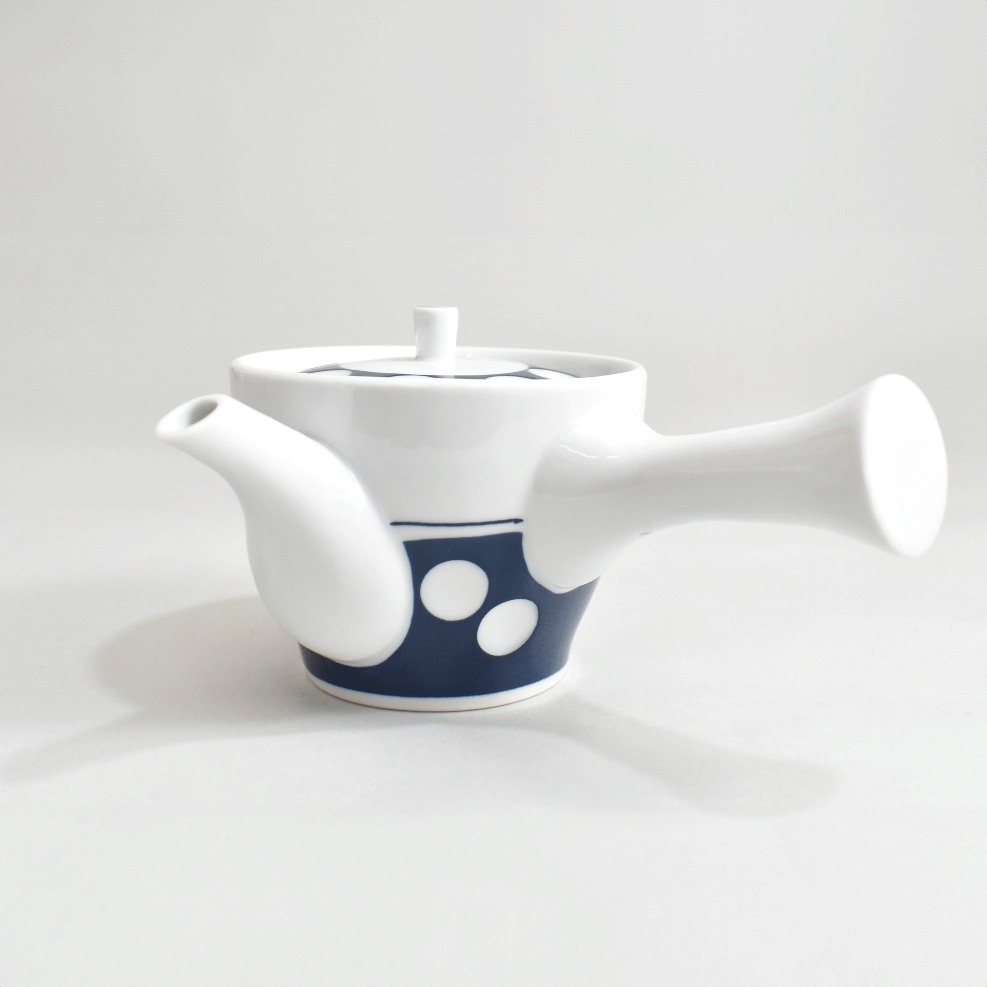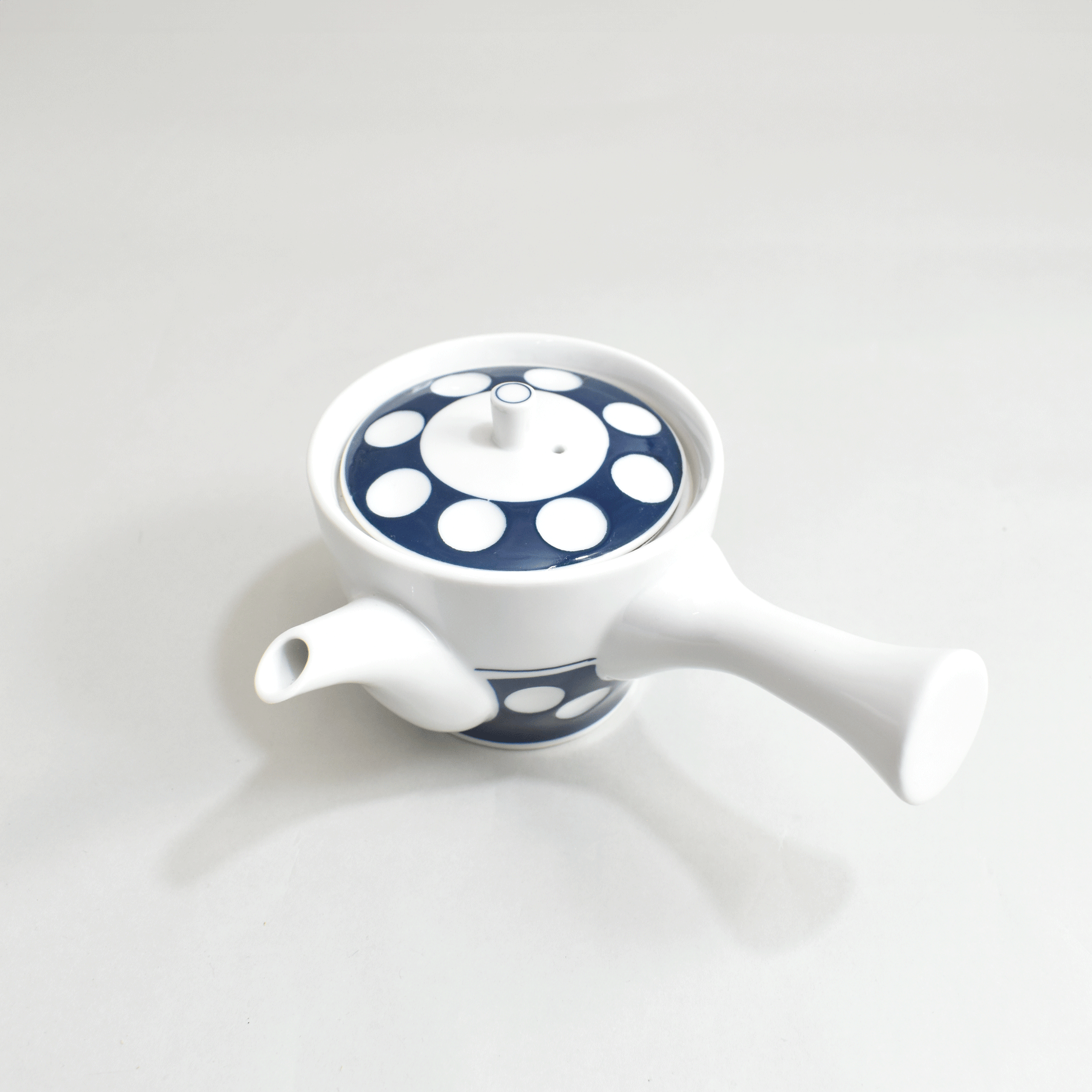 Surely everyone has seen them at least once. The indigo polka dot teacups and teapots that people drink tea from at Japanese inns, meeting halls, and companies. They are vessels that somehow bring back memories, as they were always there in places where people gathered and enjoyed each other's company. Each circle is hand painted by a craftsman using a technique called "scraping."