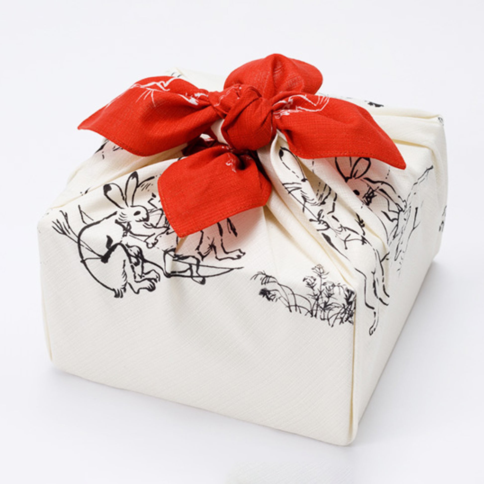Said to be the origin of satirical cartoons, Choju Jinbutsu Giga has recently been attracting attention again for its rich depiction and expressive lines. Personified rabbits, monkeys, and frogs, as if they were the incarnations of the people of the time, run around lively on the furoshiki, conveying the breath of the time 800 years later.