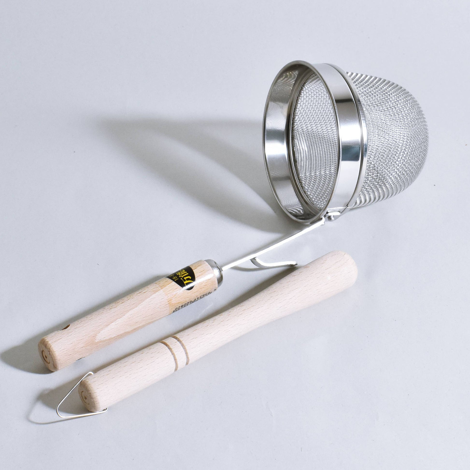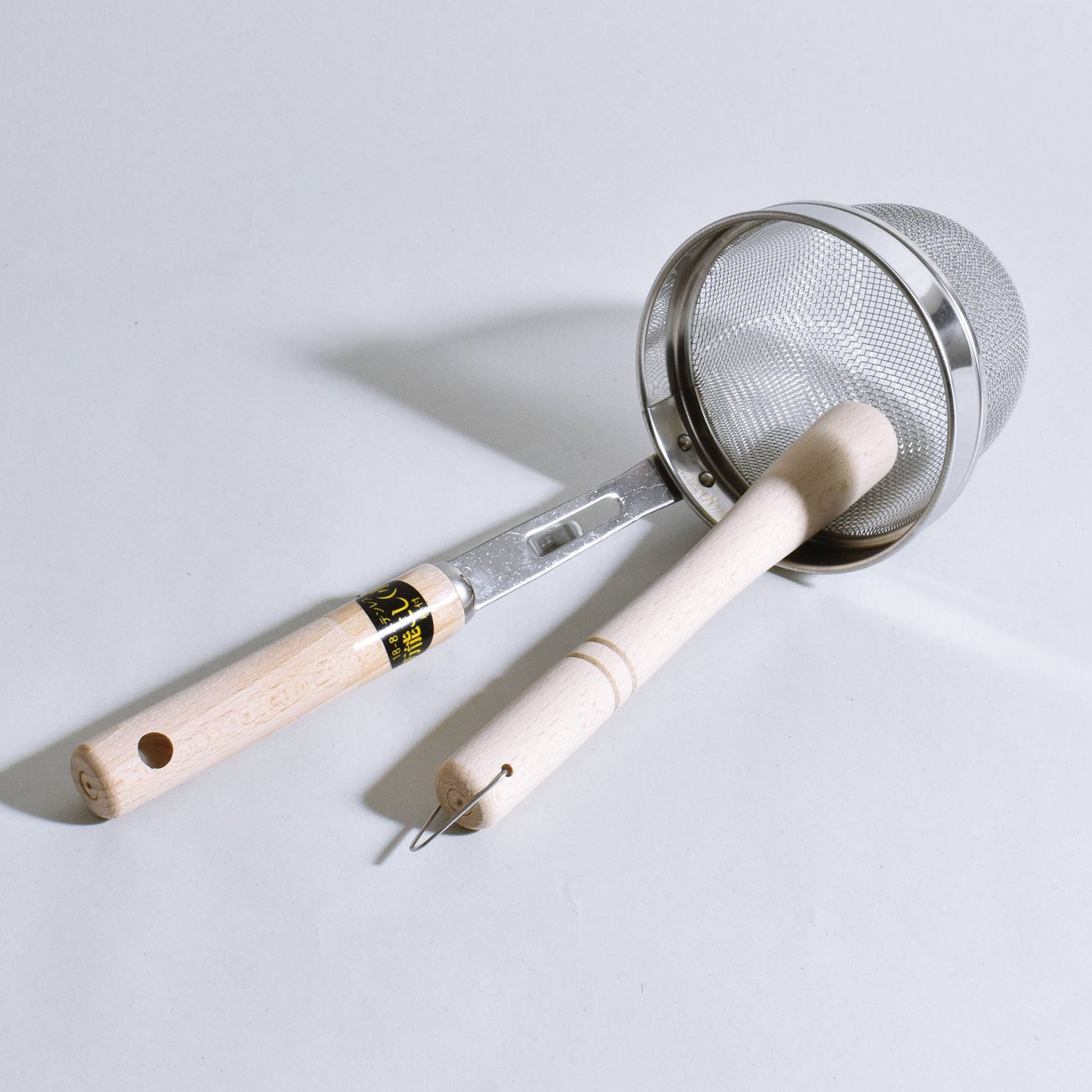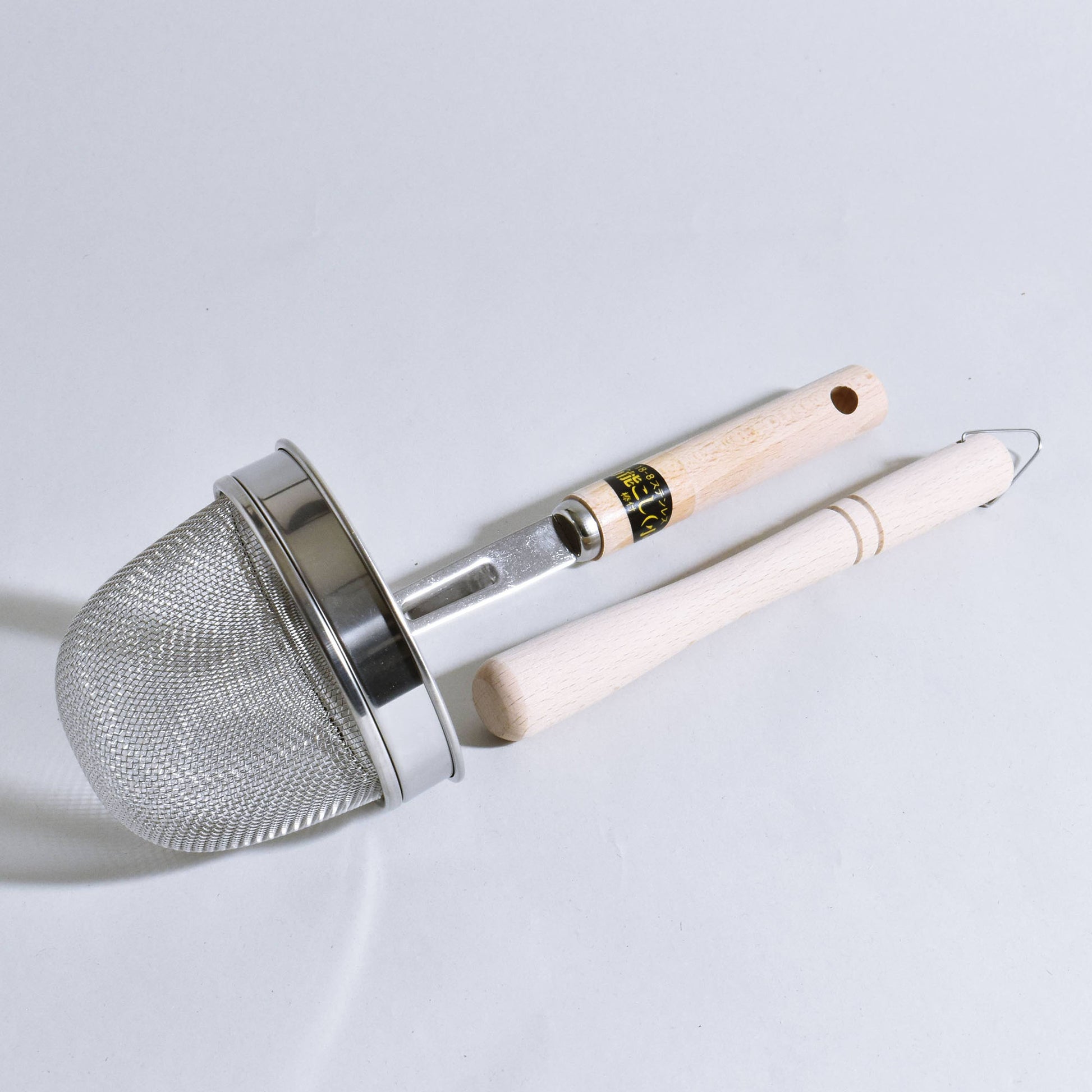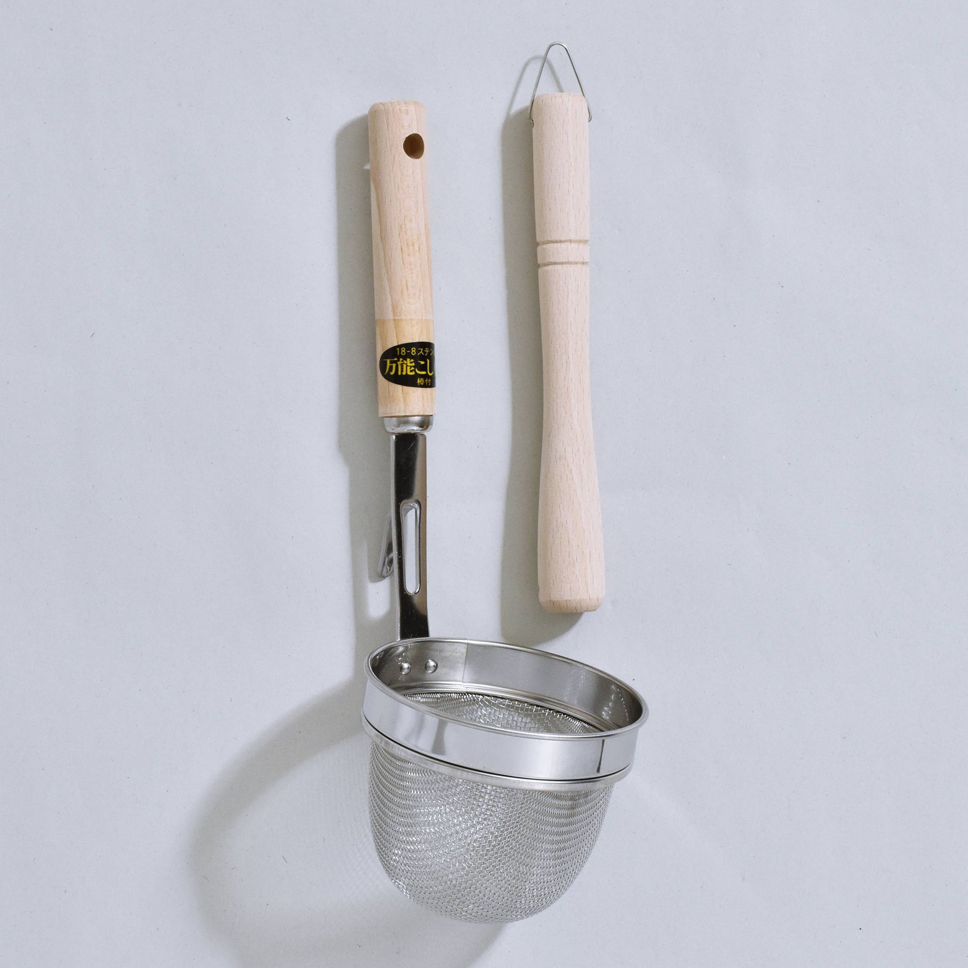 There is a hook on the strainer body, so you can hang it over a pot and strain it, for example when making miso soup.