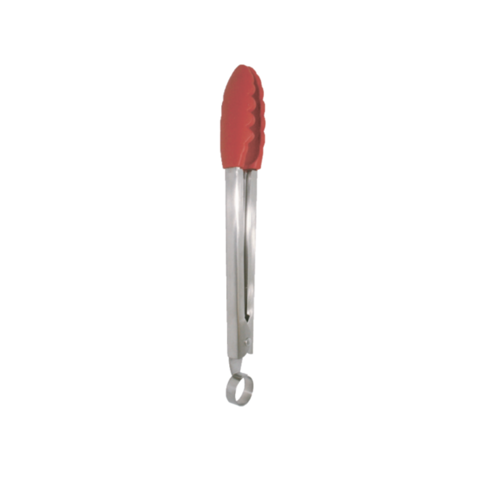 These tongs have silicone tips and can be used for stir-frying. They allow you to flip fish neatly without breaking the flesh. Made of silicone, it won't scratch frying pans. Can also be used as server tongs. Opens and closes with a single touch.
