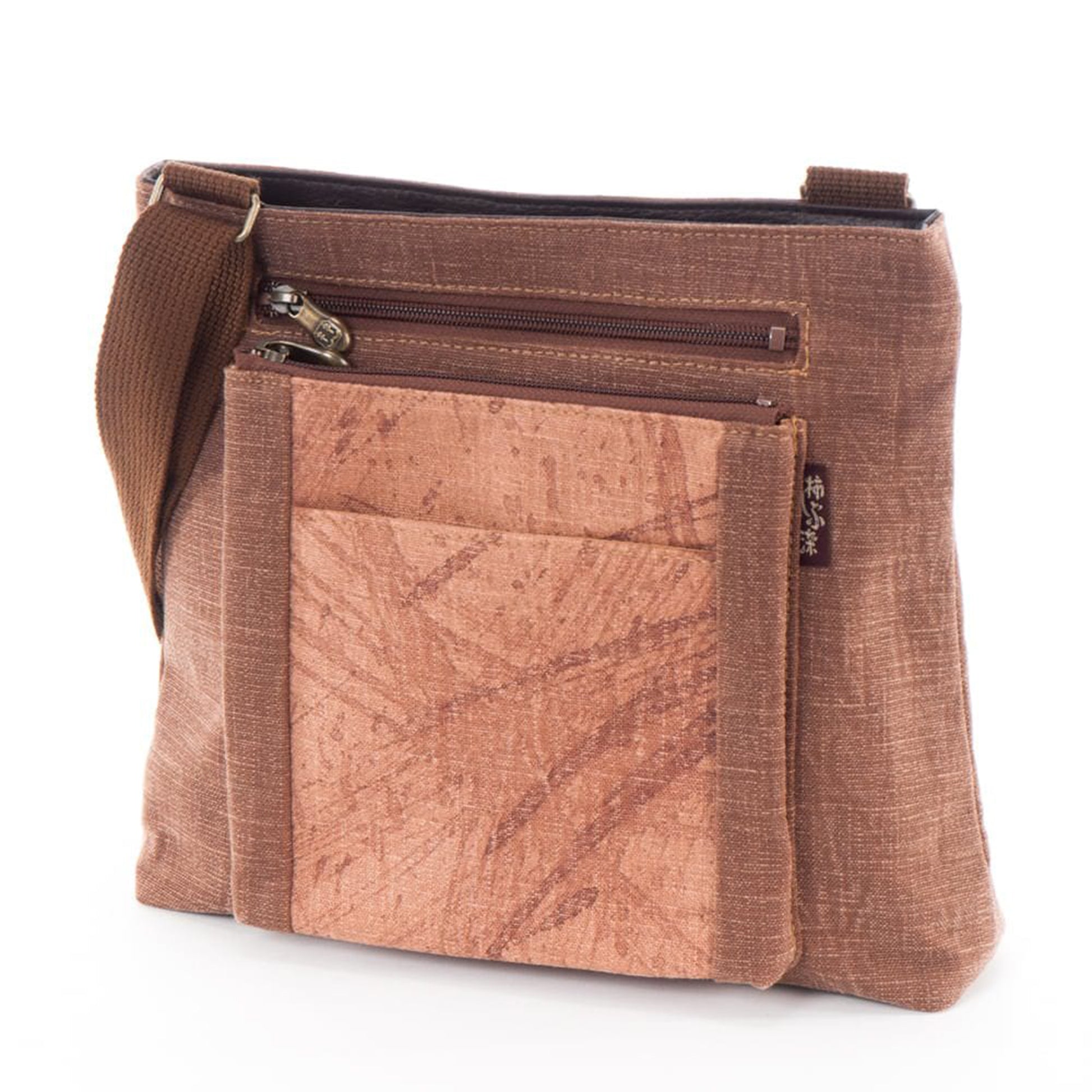 The more you use persimmon tannin dyeing, the more texture and character it develops. The expression it shows varies depending on the user, so you can enjoy it as a one-of-a-kind item. The charm of persimmon tannin dyeing, which is a natural dye, is that the texture changes with each year. Even if you just leave it unused, after a few years the color will "gradually" change to a deeper color...It has a warmth that cannot be found with chemical dyes. In addition to the main storage area, this compact bag has an attractive three-tiered front pocket. It can be used as a second bag for daily outings, travel, or as a sub-bag for lessons. [Specifications] Main body: Zipper closure Front: 2 zipper pockets, 1 persimmon tannin hand-painted open pocket Back: 1 zipper pocket Inside: 2 open pockets