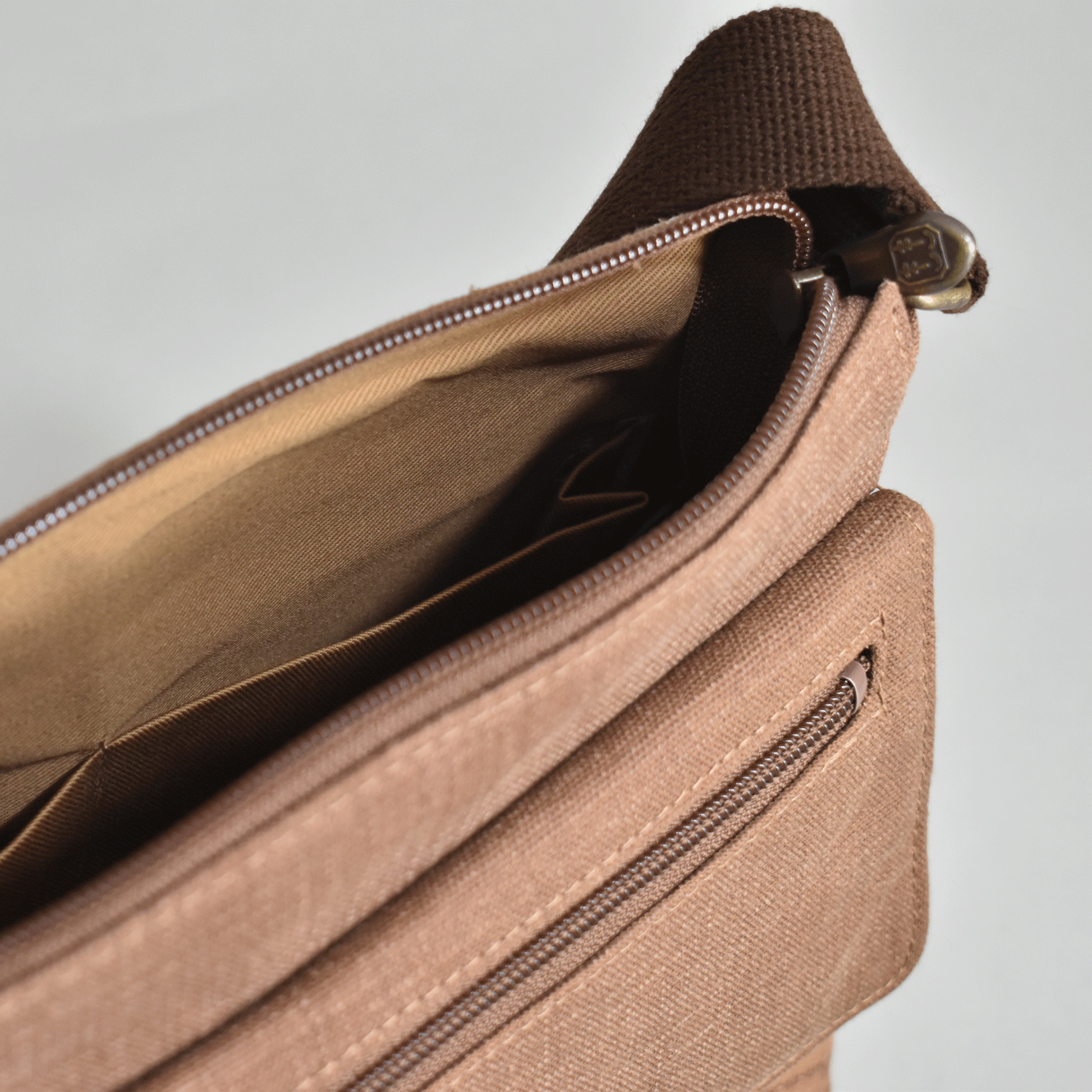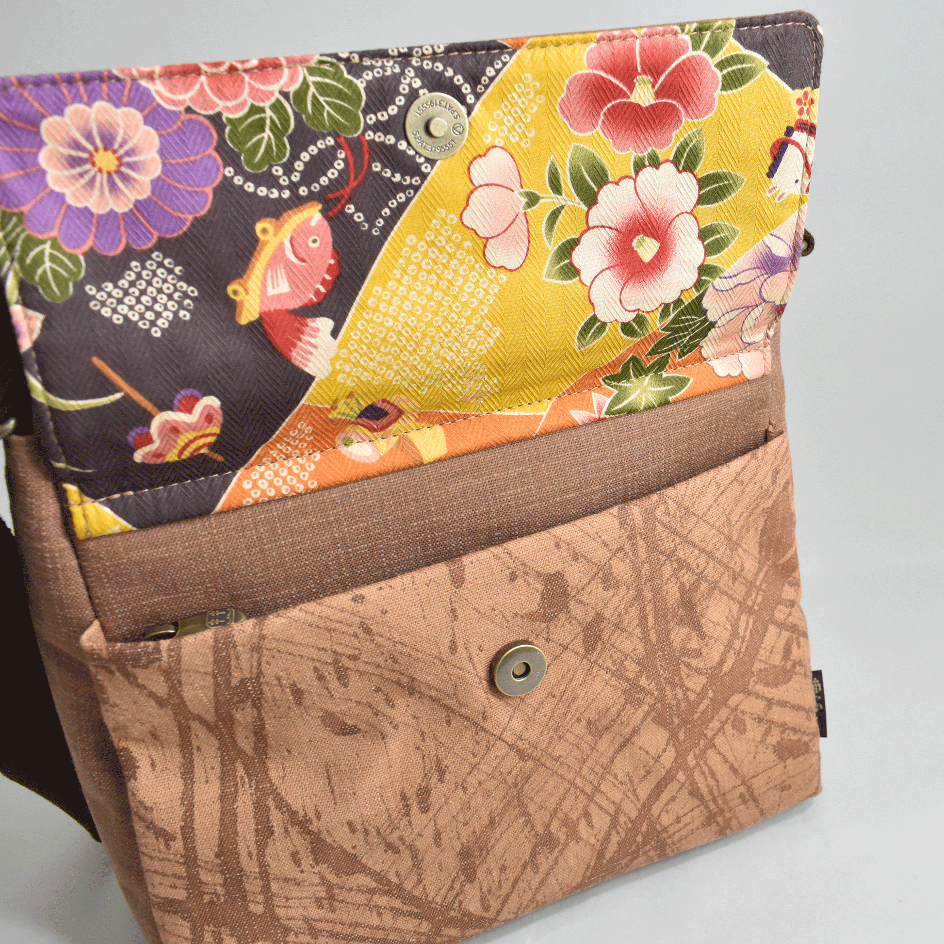 The more you use persimmon tannin dyeing, the more texture and character it develops. The expression it shows varies depending on the user, so you can enjoy it as a unique item that is one of a kind. The charm of persimmon tannin dyeing, which is a natural dye, is that the texture changes every year. Even if you just leave it unused, after a few years the color will "gradually" change to a deeper color...It has a warmth that cannot be experienced with chemical dyes. Although it is made of canvas, it is soft and easy to use in any situation. It is a large size with a gusset that can hold a plastic bottle, making it easy to store and take out. Each pocket closes securely with a magnetic hook or zipper. [Specifications] Main body: Zipper closure Front: Flap (1 zipper pocket) Magnetic closure + 1 zipper pocket Back: 1 open pocket with magnetic closure Inside: 2 open pockets with cell phone holder