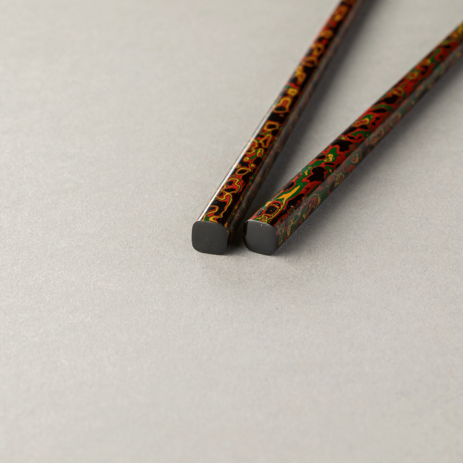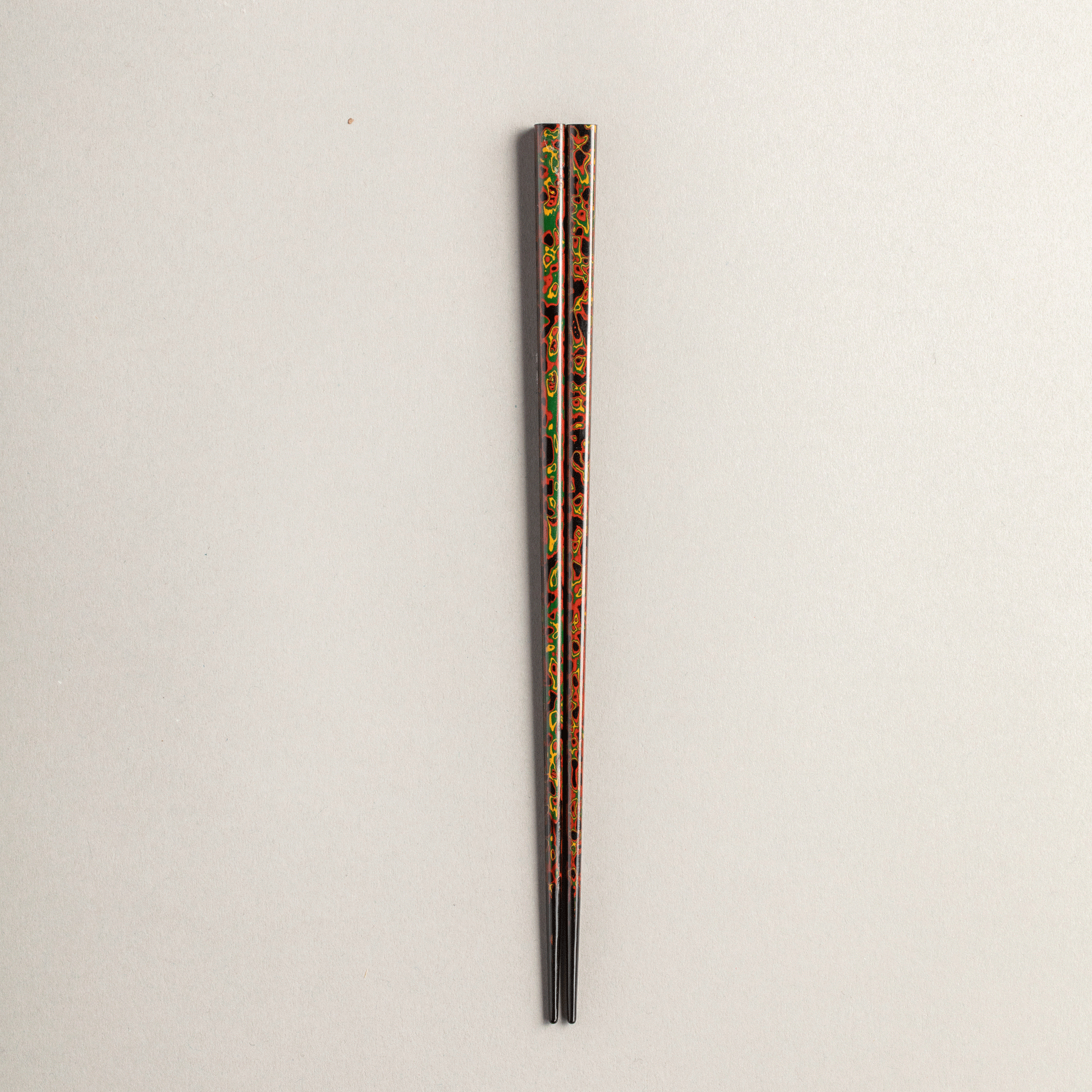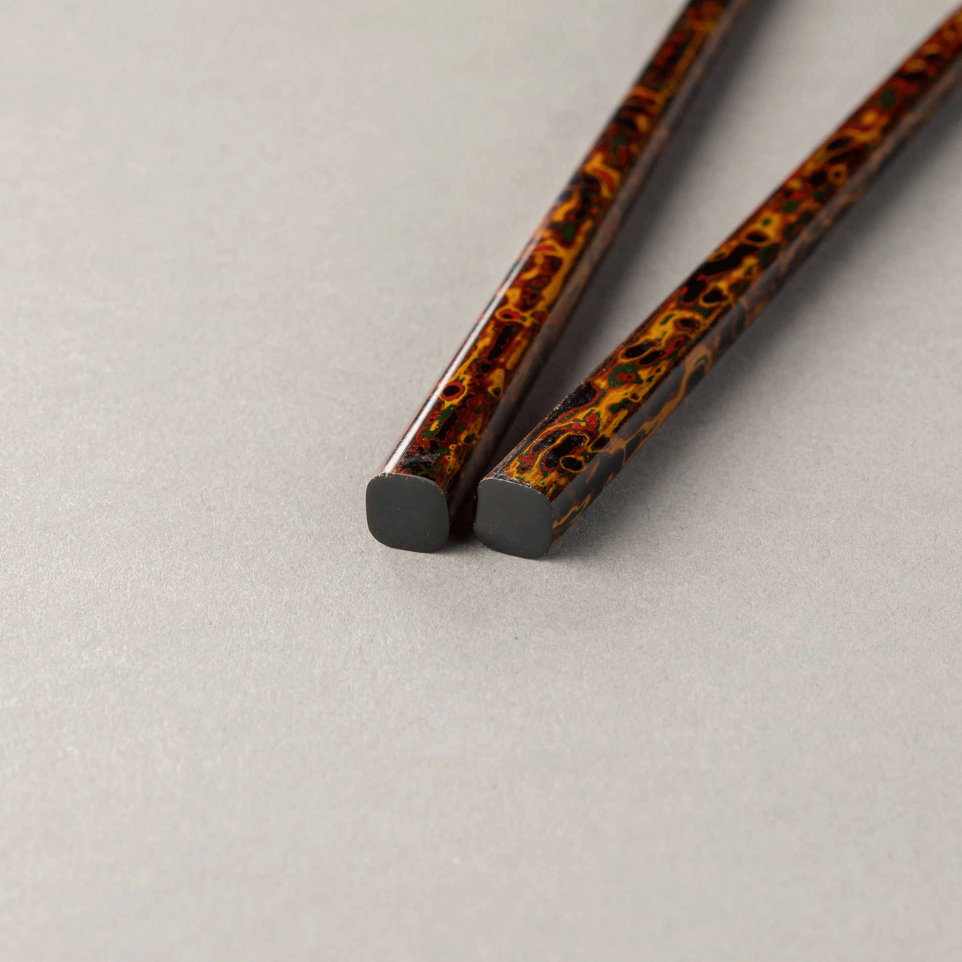 Tsuishu is a typical technique for Kiso lacquerware. It is a technique in which layers of lacquer of various colors are applied to the wood using a rolled up cloth or similar material, and then polished down to create a pattern.