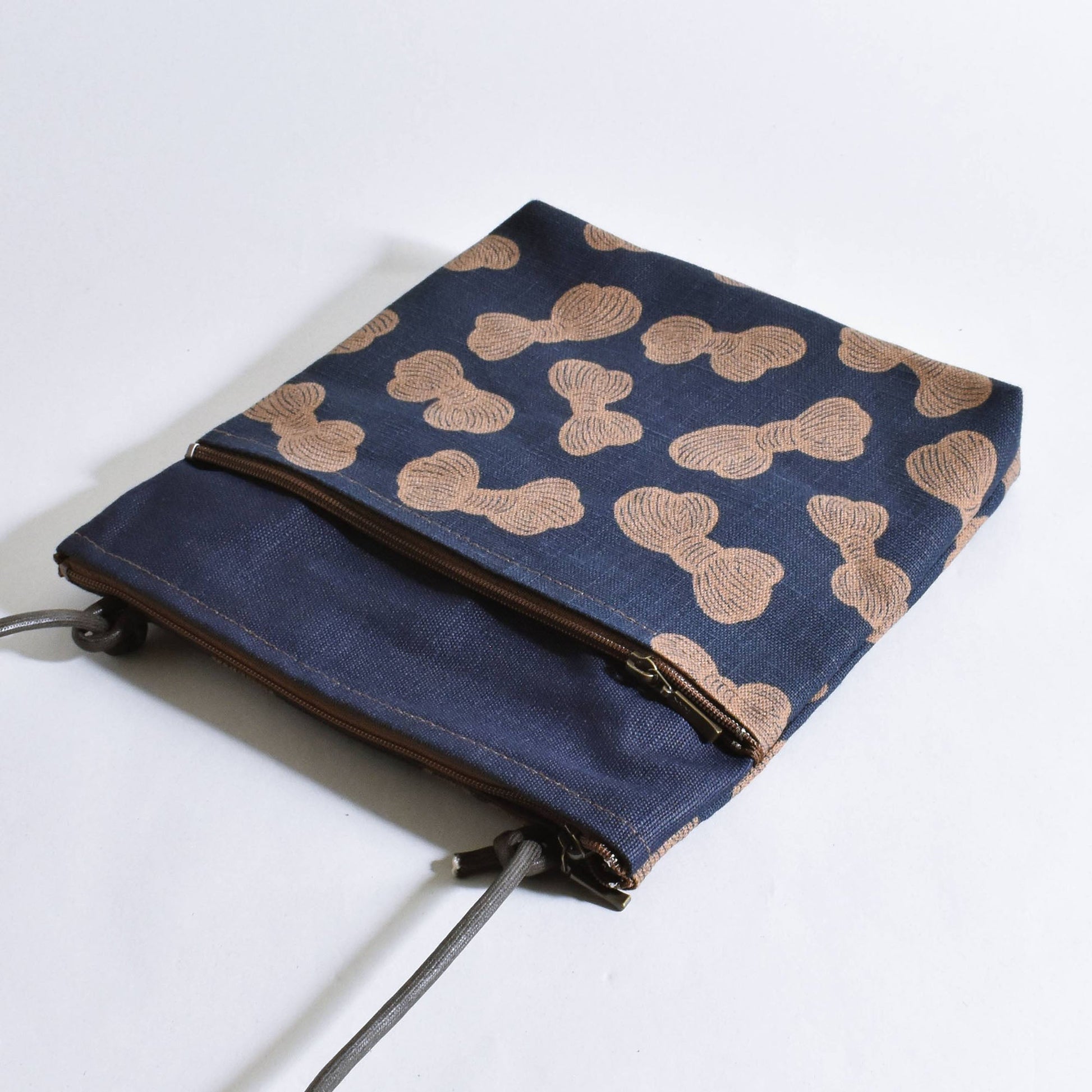 The woven cotton cloth is bleached, then repeatedly dyed with indigo and washed to create indigo-dyed fabric. The finished indigo-dyed fabric is then layered with persimmon tannins and specially processed to reduce the presence of either dye and create a natural texture... This is how indigo-dyed fabric is made. The tannins deepen over time, and the longer you use it, the more you can enjoy the changes in the material. This lightweight, convenient pochette leaves both hands free! The thin shoulder straps are cute. Put in your wallet, cell phone, eco bag, and other essentials for short shopping trips or outings. Both of the two compartments have zippers, so you don't have to worry about accidentally dropping anything inside. [Specifications] Main body - zipper closure Front - 3 zipper pockets