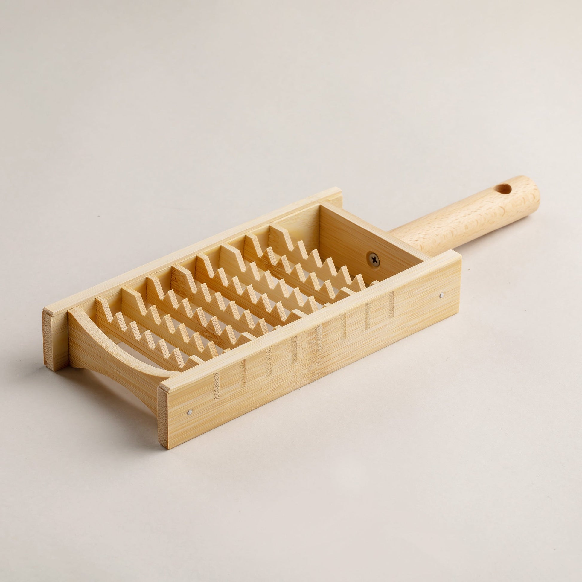 It's called Oni-oroshi because it looks like the teeth of a demon. You can roughly chop radishes, carrots, apples, etc. It doesn't get watery, so you can feel the flavor of the ingredients more strongly. The longer you use it, the stronger the bamboo texture will become, and it will become a staple kitchen tool that you will love.
