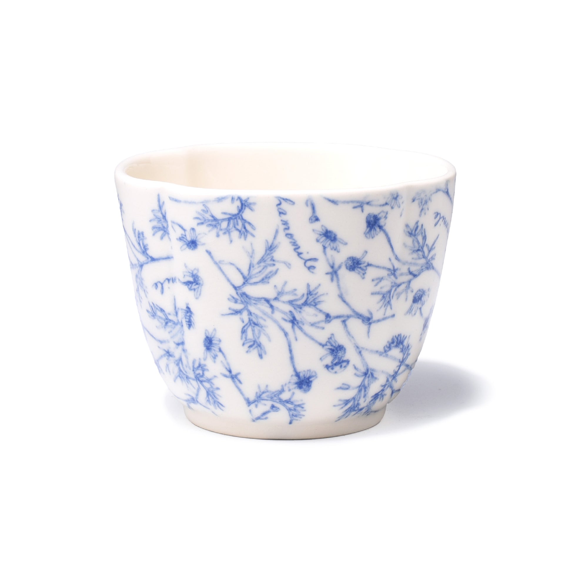 This chamomile is based on the Japanese quince shape, one of the family crests and patterns, and has Western-style decorations. It goes well with a variety of Japanese, Western and Chinese dishes. It also goes well with coffee and cup sweets, and is easy to use as a soba choko (a small cup for soba noodles). It is an item with many uses.