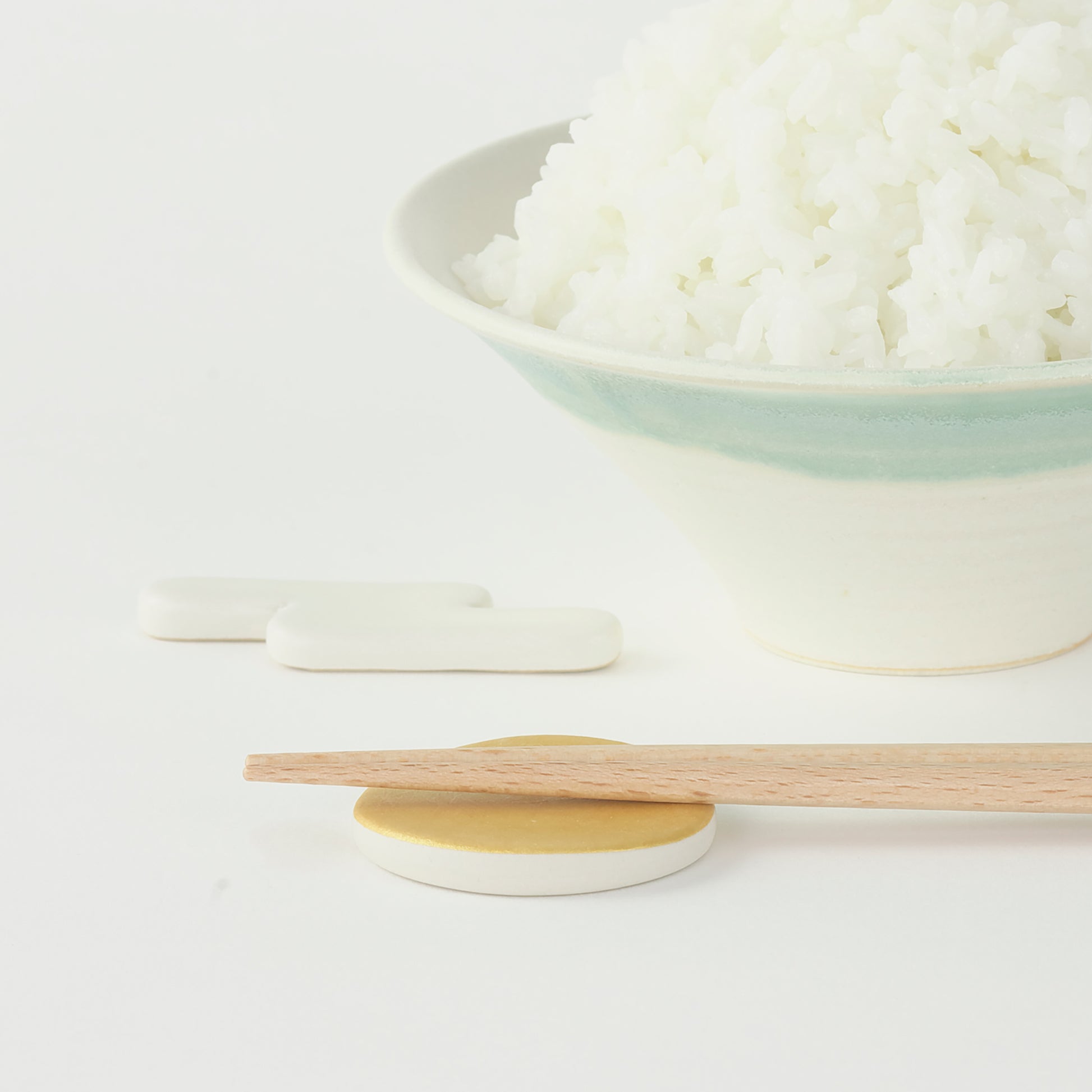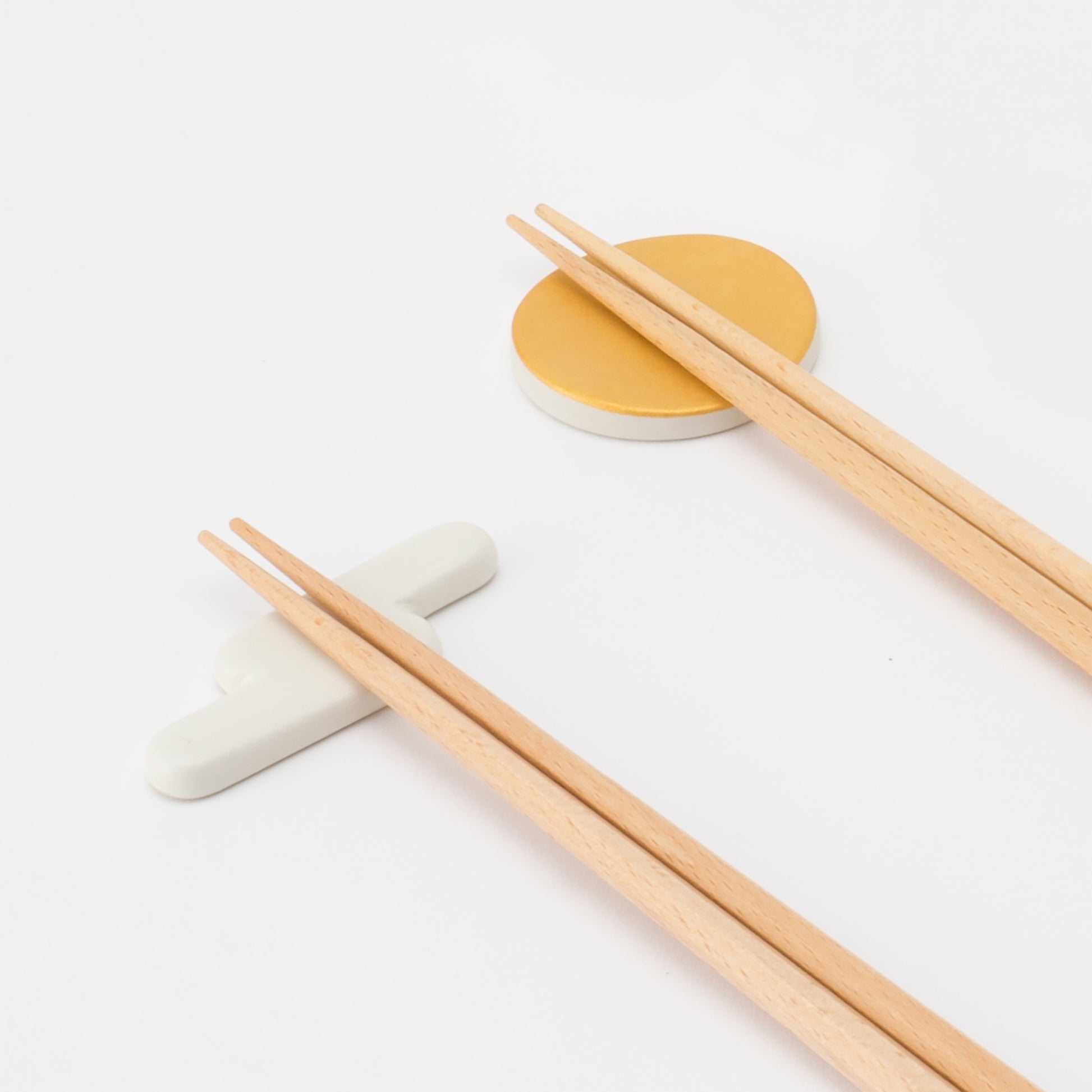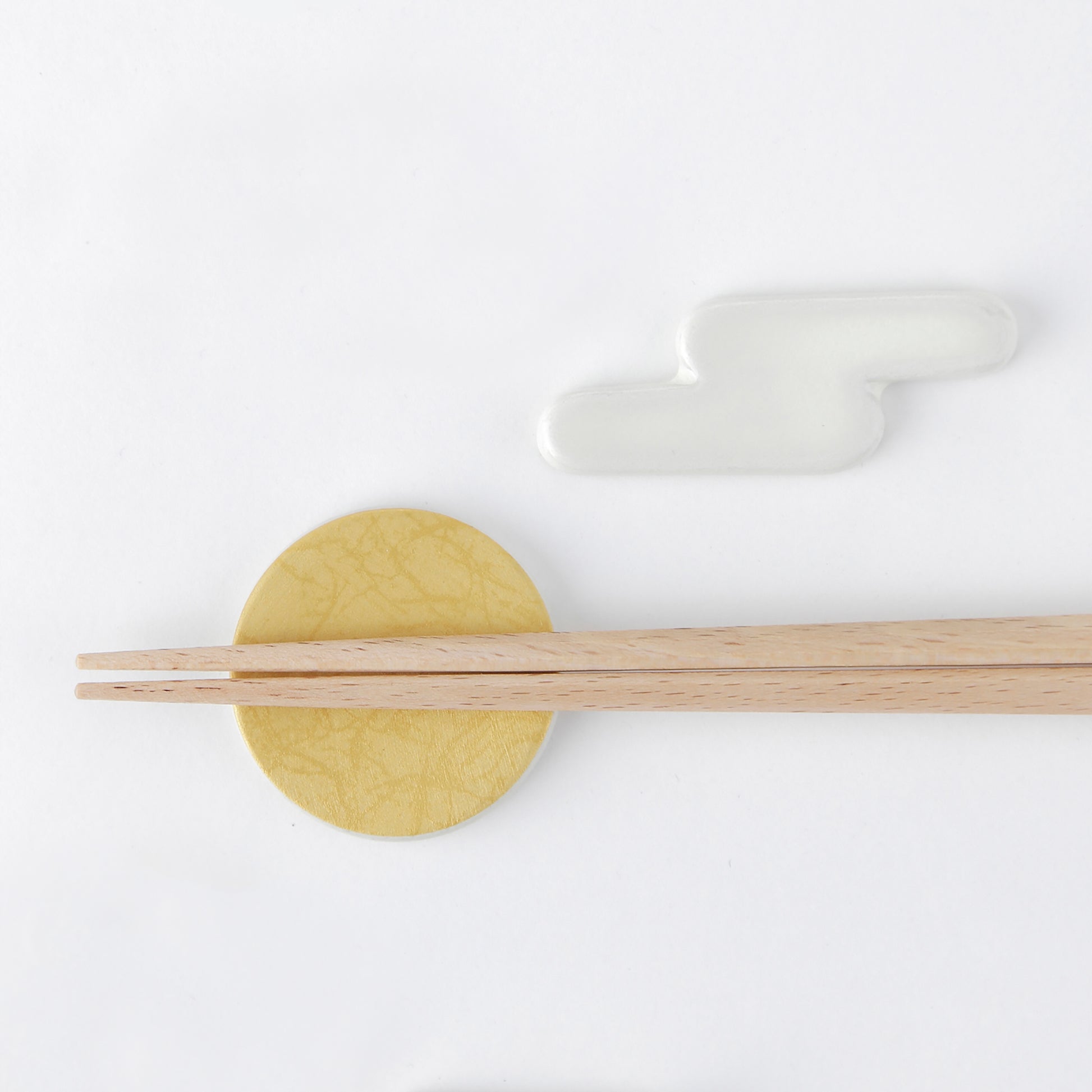 This chopstick rest set is shaped like a golden moon shining in the night sky and floating clouds hanging over the moon.