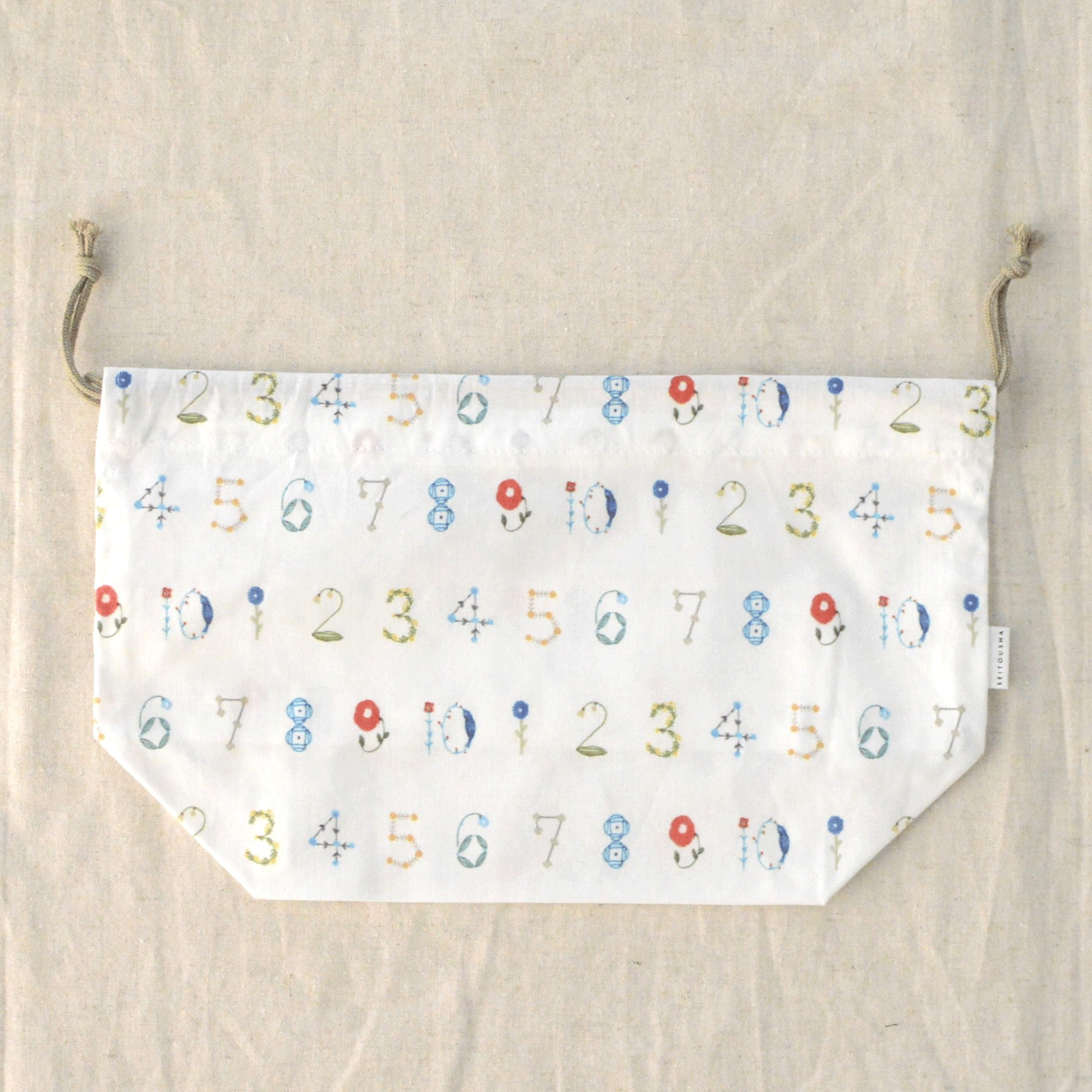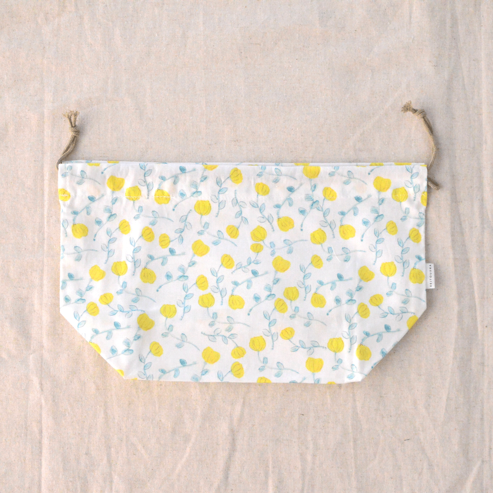 A soft-looking drawstring pouch for lunch boxes made from cotton. It has plenty of gusset, so in addition to being a lunch box, it is also recommended for storing snacks and other items.