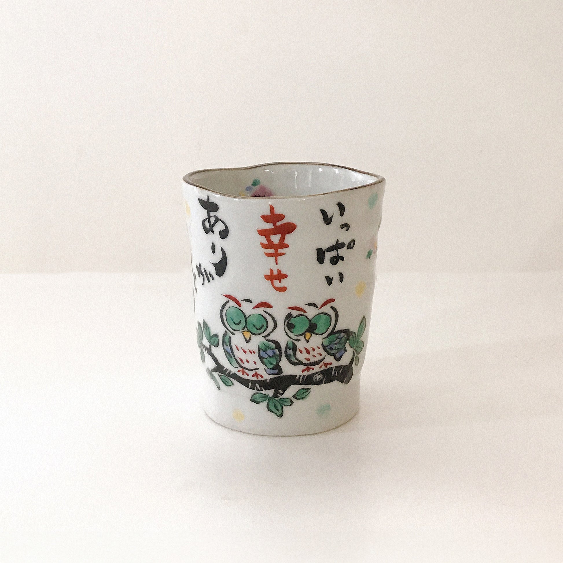 It features an owl, which is said to bring good luck and bring no hardship. Its easy-to-hold, stable shape is popular.