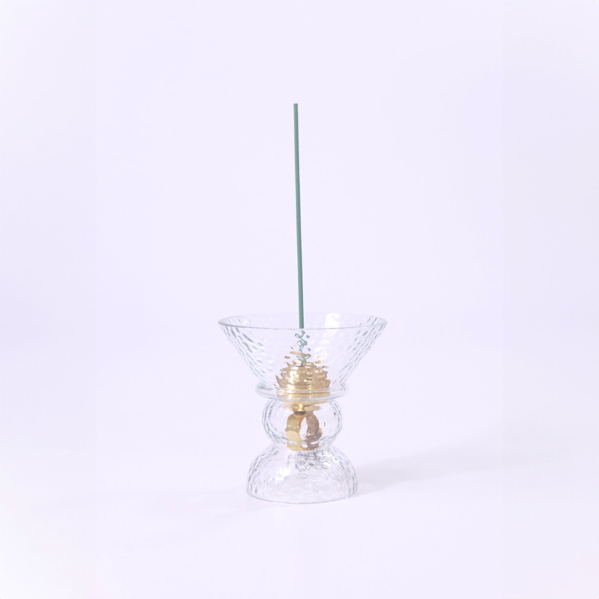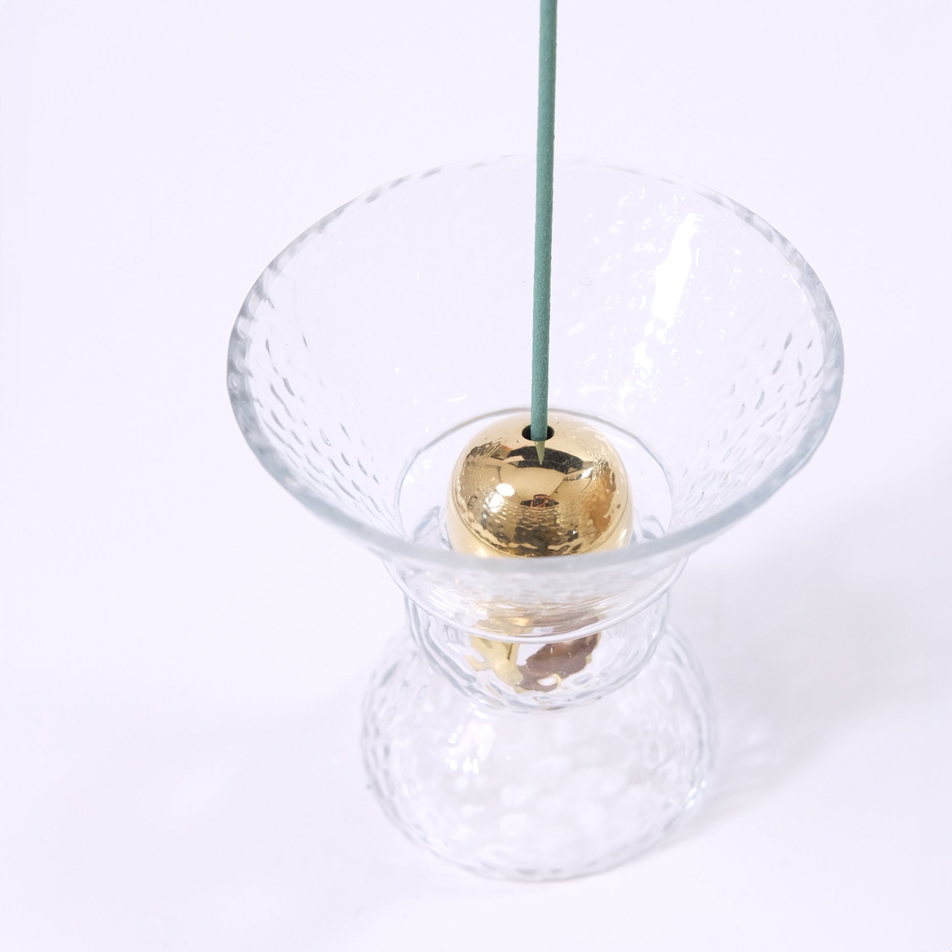 ●This incense stand features a beautiful combination of glass and brass. ●A stylish design with cool clear glass accented with the heavy yellow gold of brass. ●It can be used as an incense holder, and even when there is no incense in it, it will add a fascinating object to any space. ●Brass is a material that changes to an antique color over time, making it a fun sight to watch. ●It is designed to be used by attaching a brass holder to the glass stand. ●The stand securely catches ash.