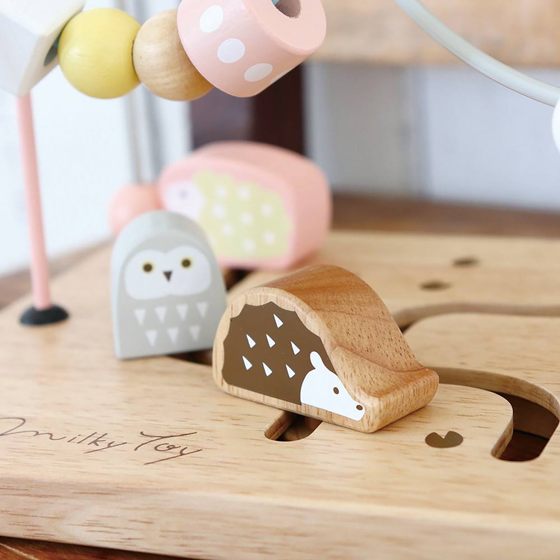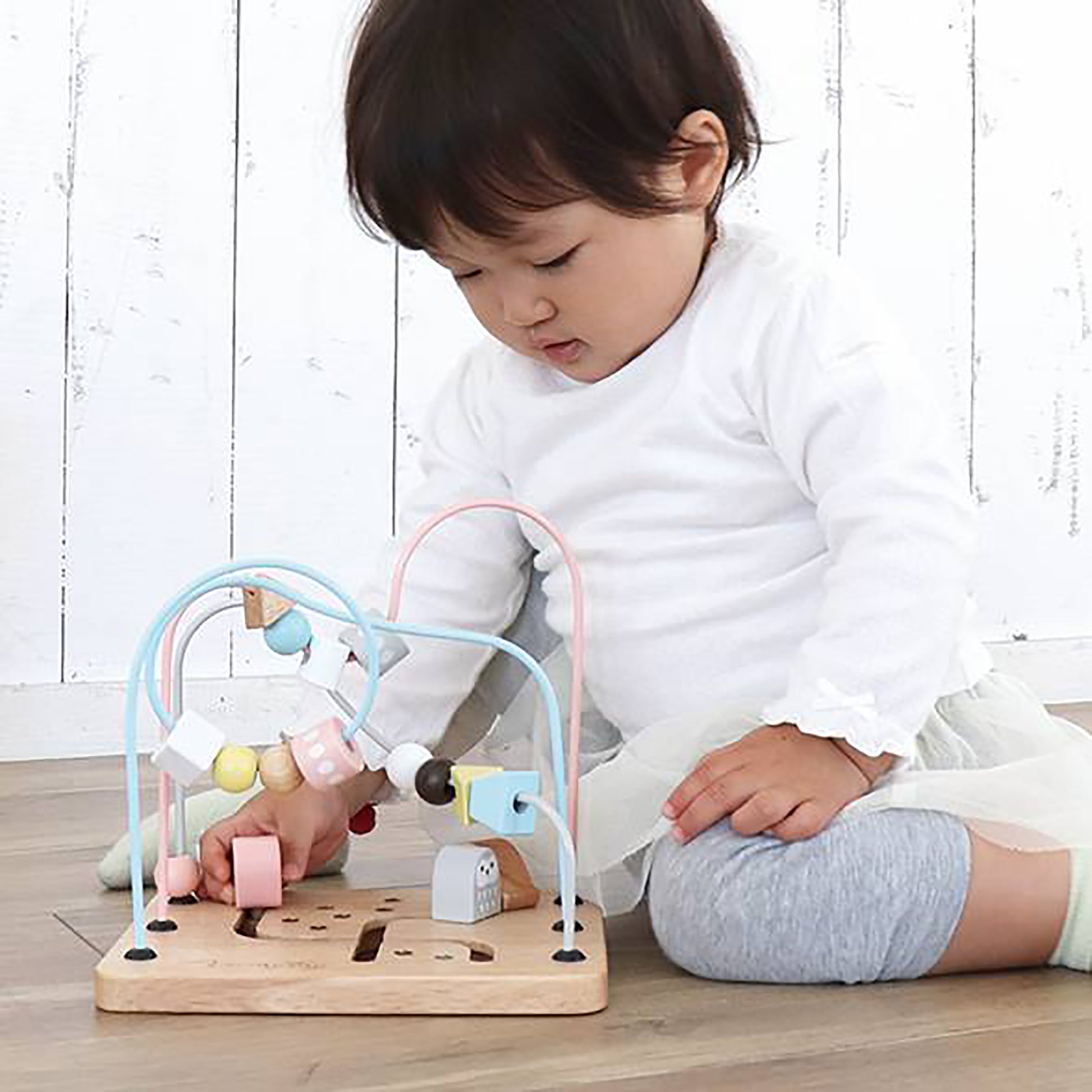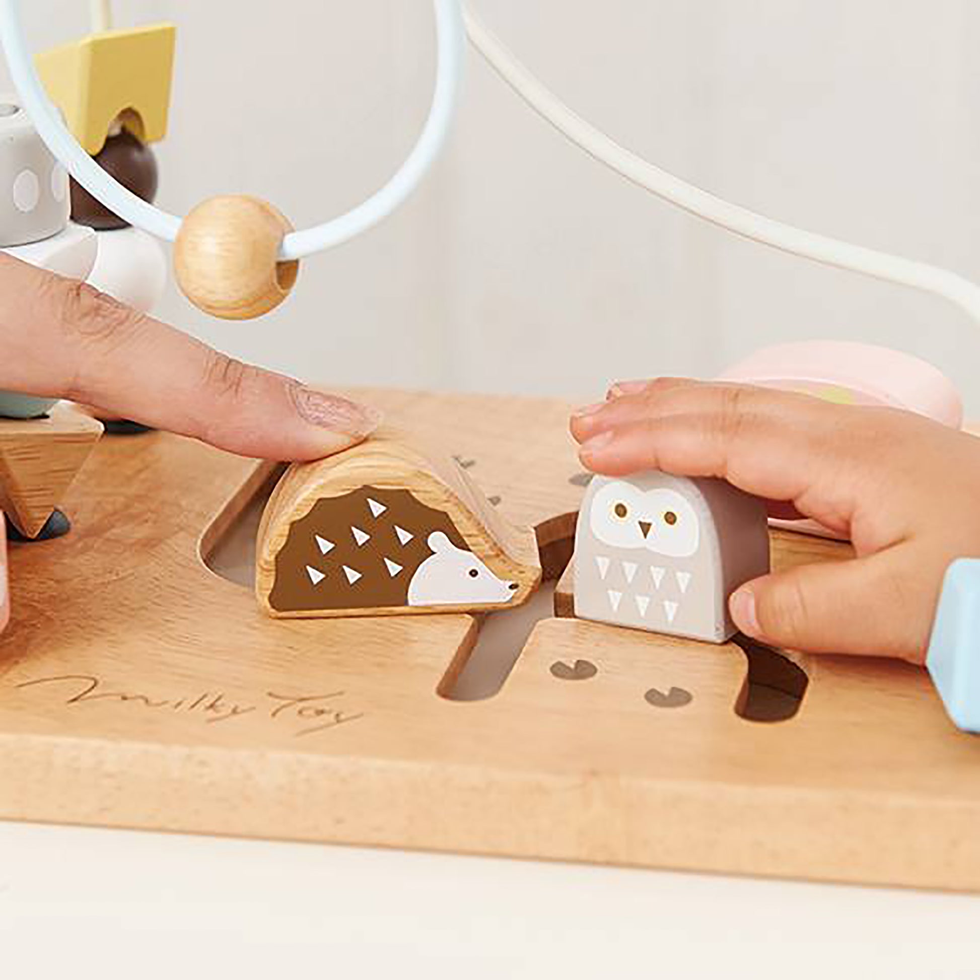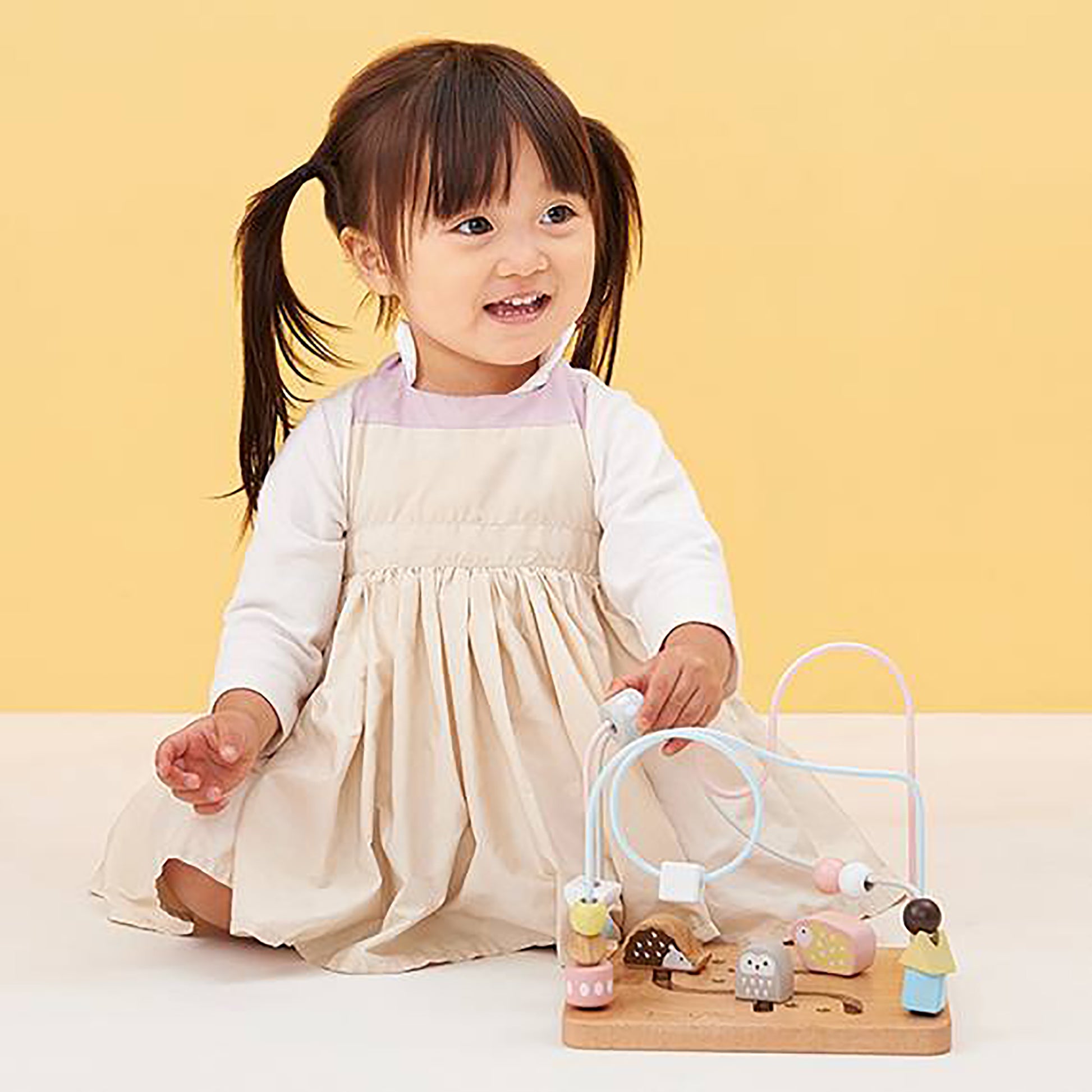 A fun walk, a quick walk. Nuts spinning in the sky. Welcome to Animal Crossing, the land of happiness! A fun looping game with softly colored beads and animals. You can play for a long time by pinching beads of various shapes such as circles, triangles, squares, and trapezoids with your fingers and spinning them around, moving the animals to play pretend, or making up stories with the beads and animals.