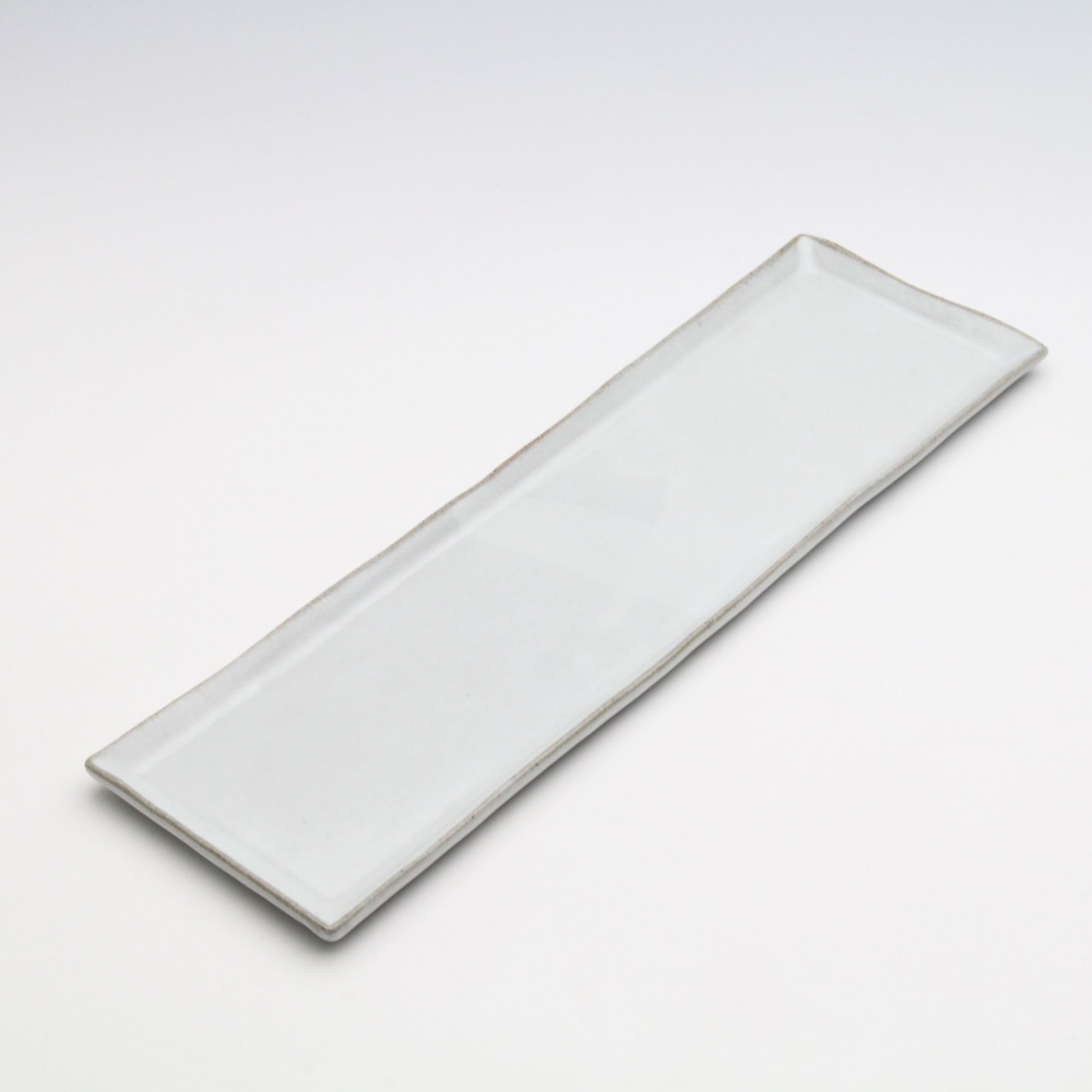 A simple and warm white porcelain rectangular dish. Its plain color makes it suitable for any type of cuisine, whether Japanese or Western.