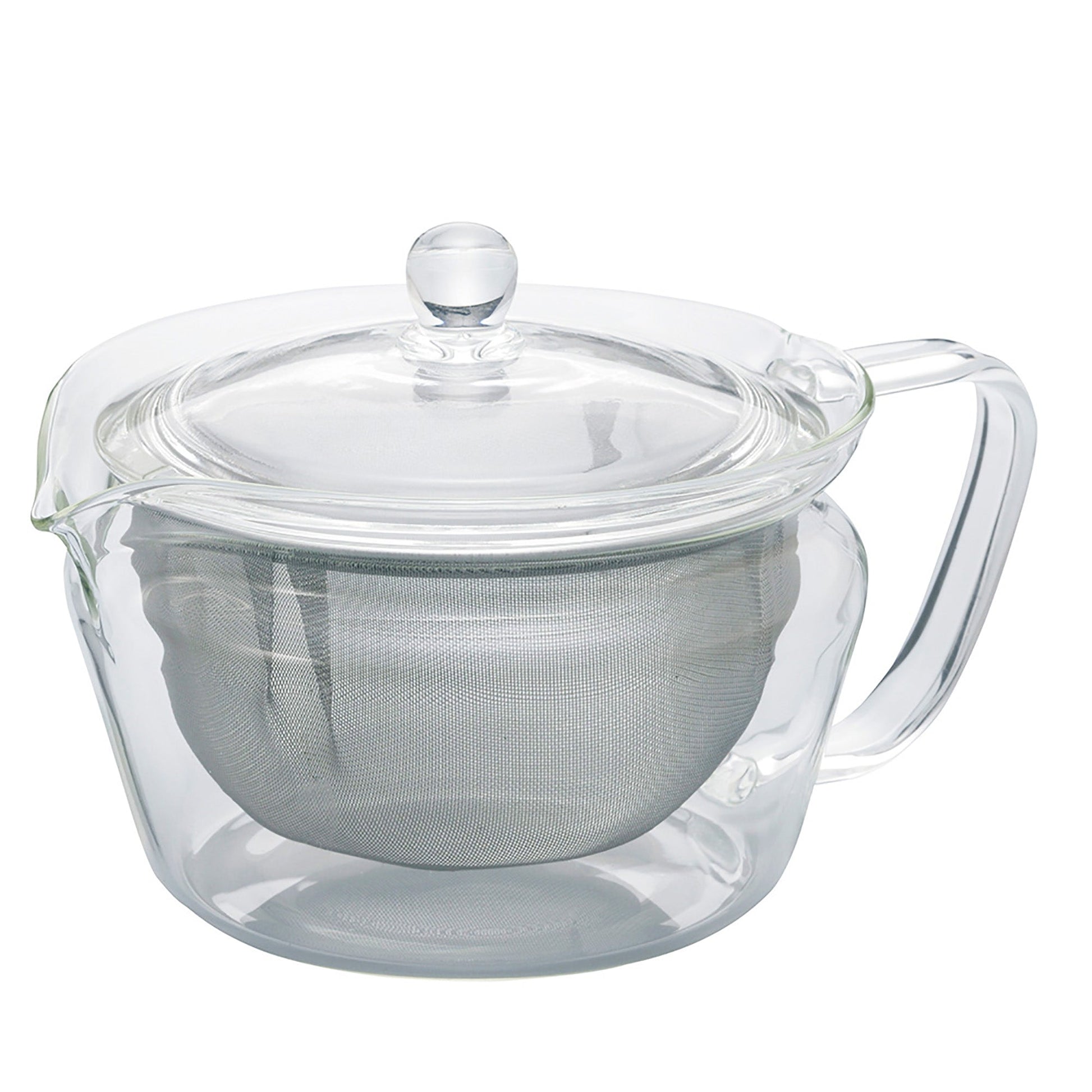 A heat-resistant glass teapot for enjoying Japanese tea in style. To brew delicious tea, the large tea strainer conforms to the shape of the glass to extract the full flavor of the tea leaves. The shape is designed for ease of pouring, allowing you to pour smoothly down to the last drop. The spout is tapered for easy pouring.