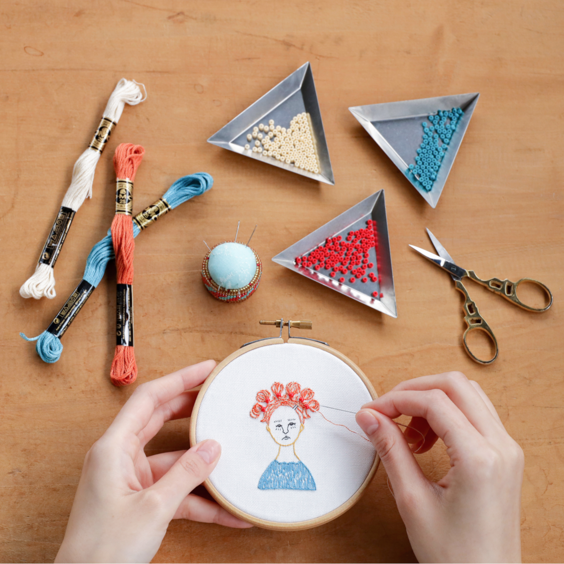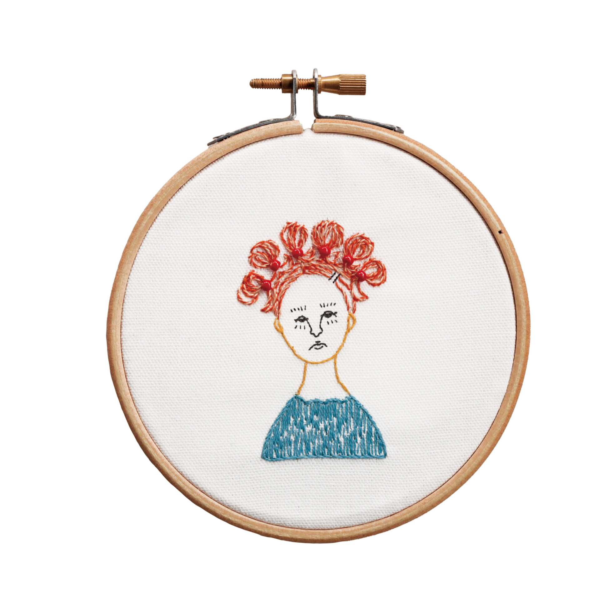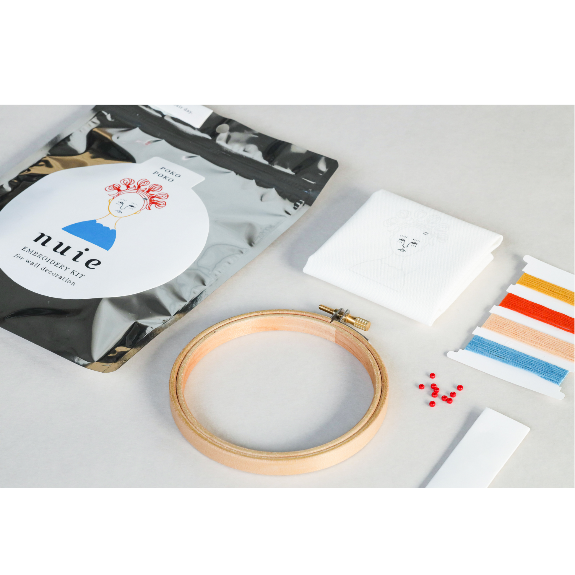 This embroidery kit features six girls with troubled expressions as they try not to style their hair properly. An embroidery frame is also included in the set, so once you have finished sewing the back side, you can hang it on the wall as wall art. The fabric has a design already printed on it, so you can start making it right away. It only requires two simple stitches and no difficult techniques, so it's recommended for beginners. -POKOPOKO- When I wake up in the morning, my hair is a big explosion. My bangs and back hair are messy and look like a lion's mane. I'll play with hair accessories now. I'm not going to meet anyone today anyway.
