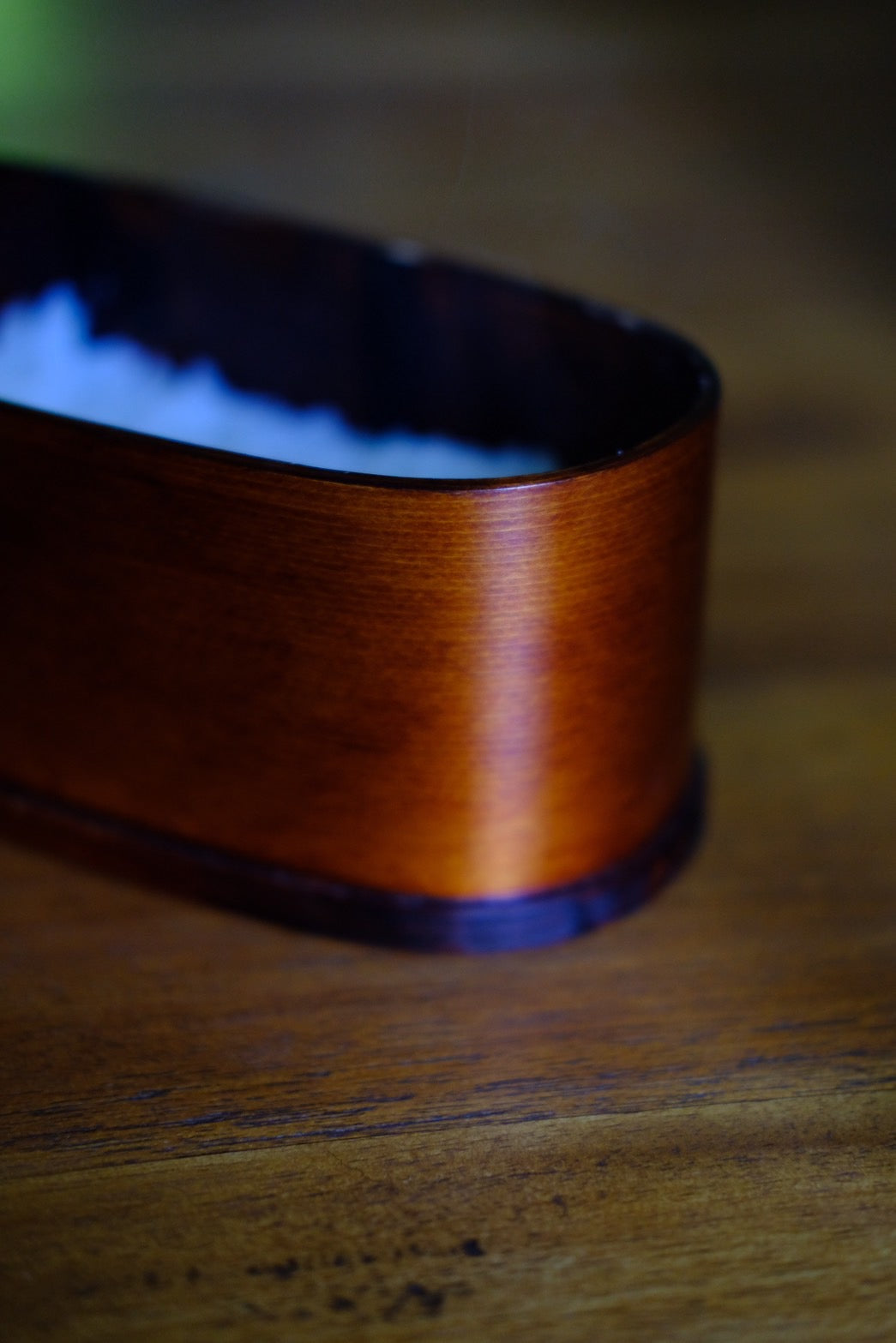細かく美しい木目と軽さを持つ木曽桧を使用。その温もりと美しさは使う人を魅了します。自然の木の呼吸は、水分を適度に調整し、冷めてもおいしいごはんがいただけます。