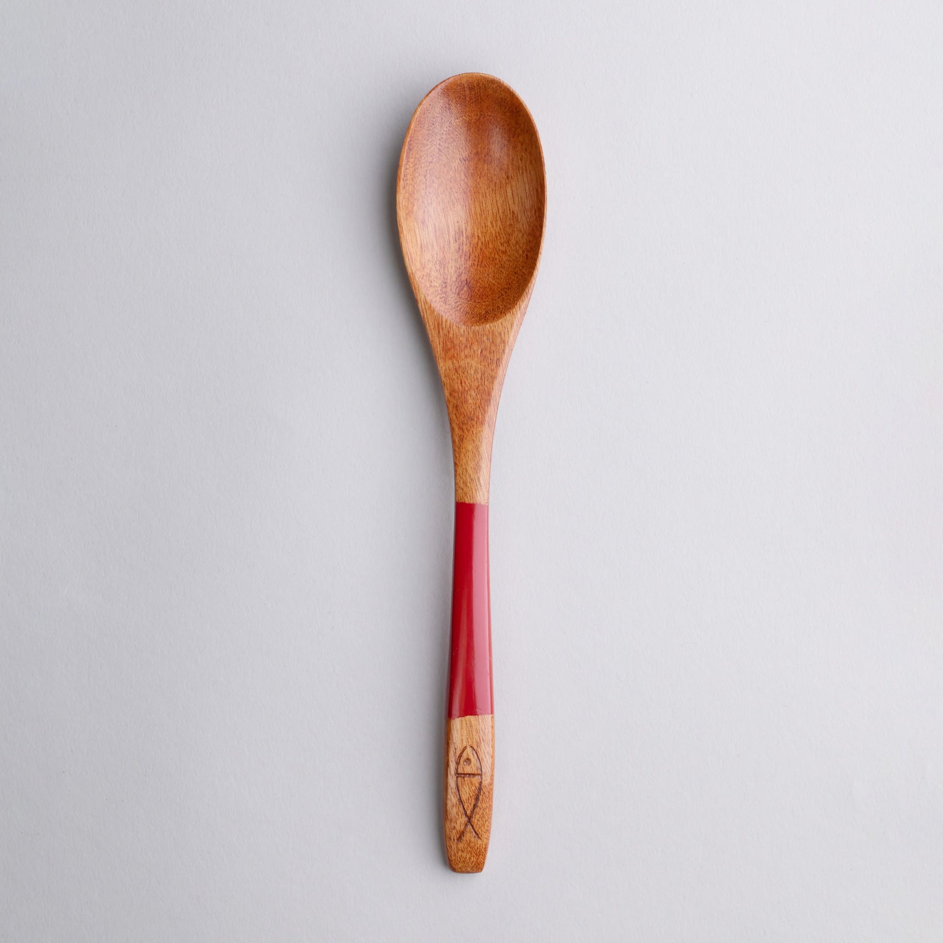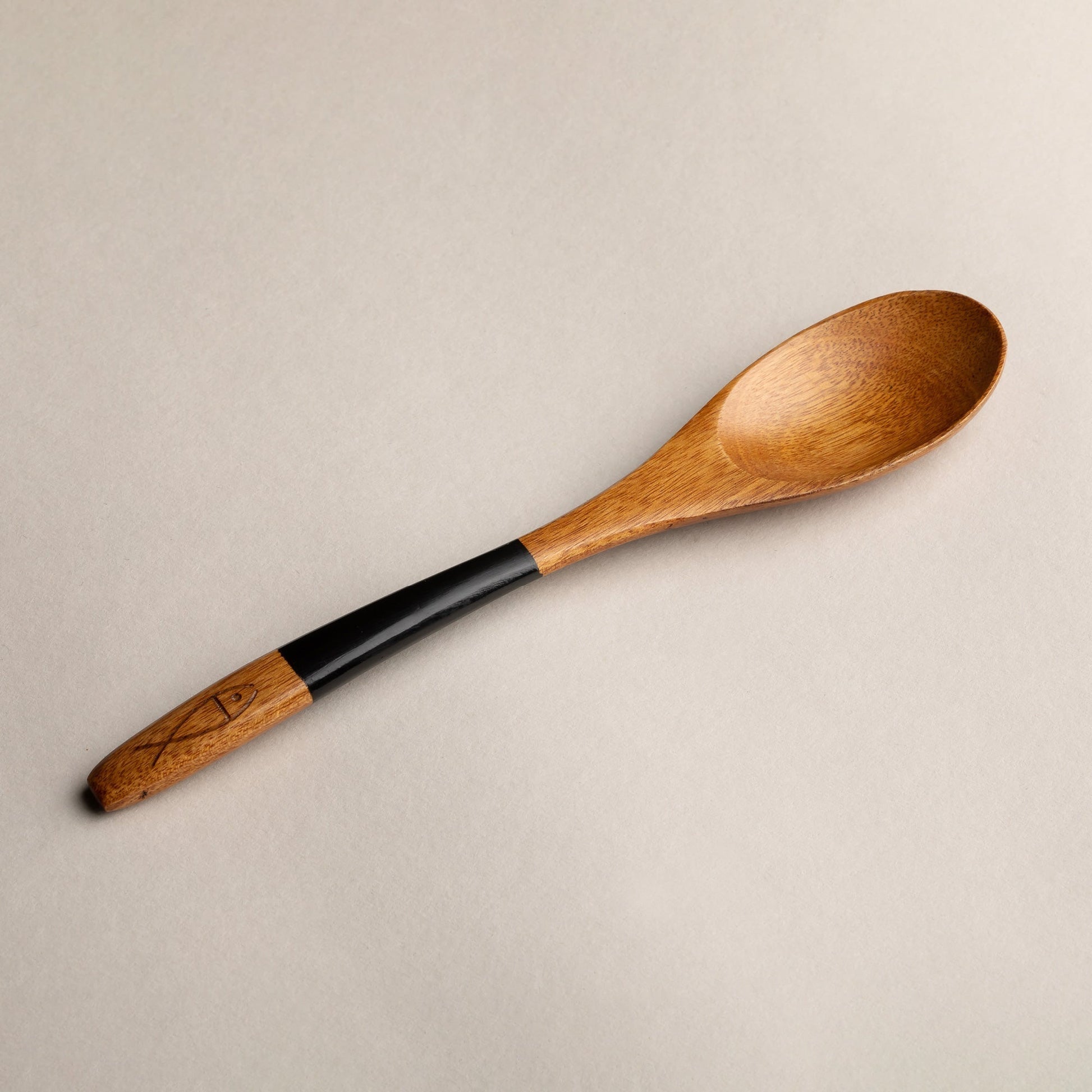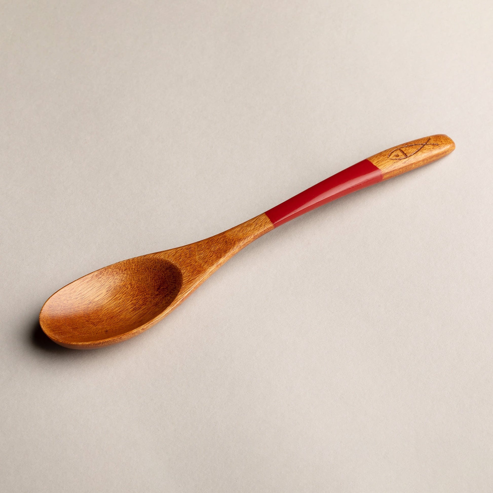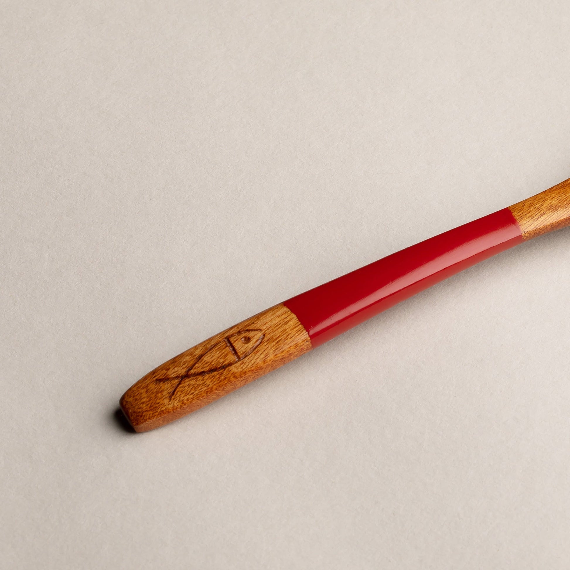 木製 塗分 スプーン 魚彫 大