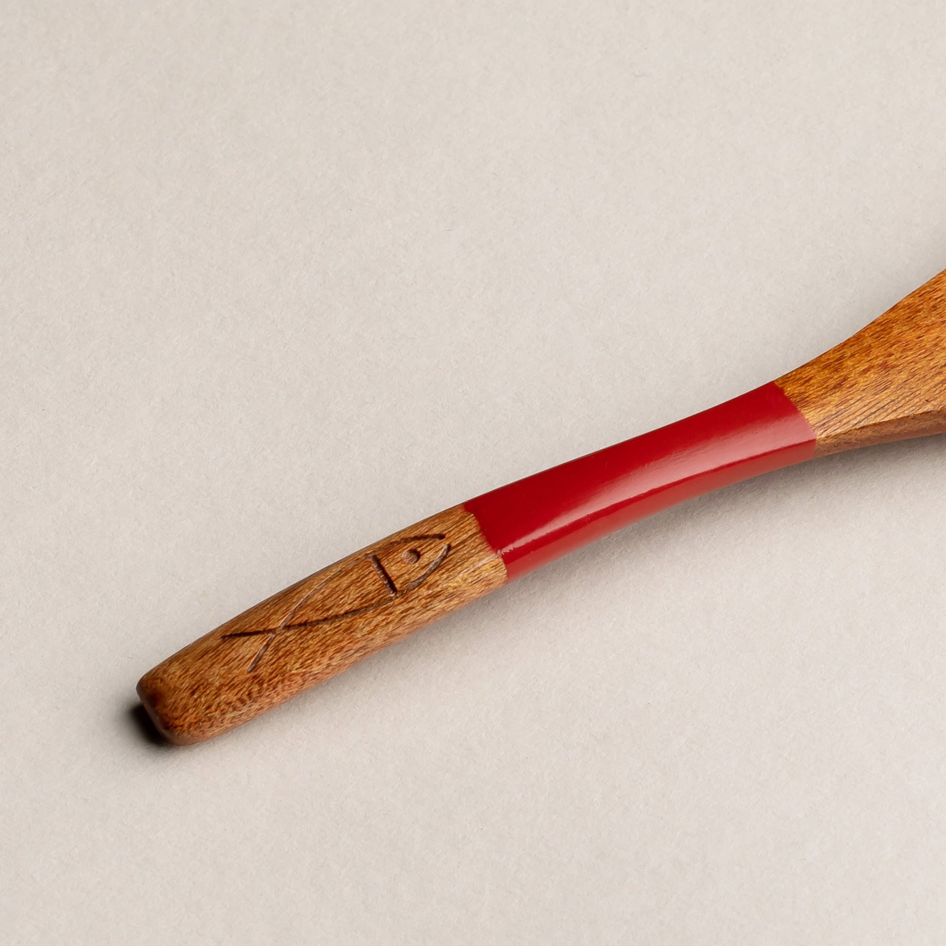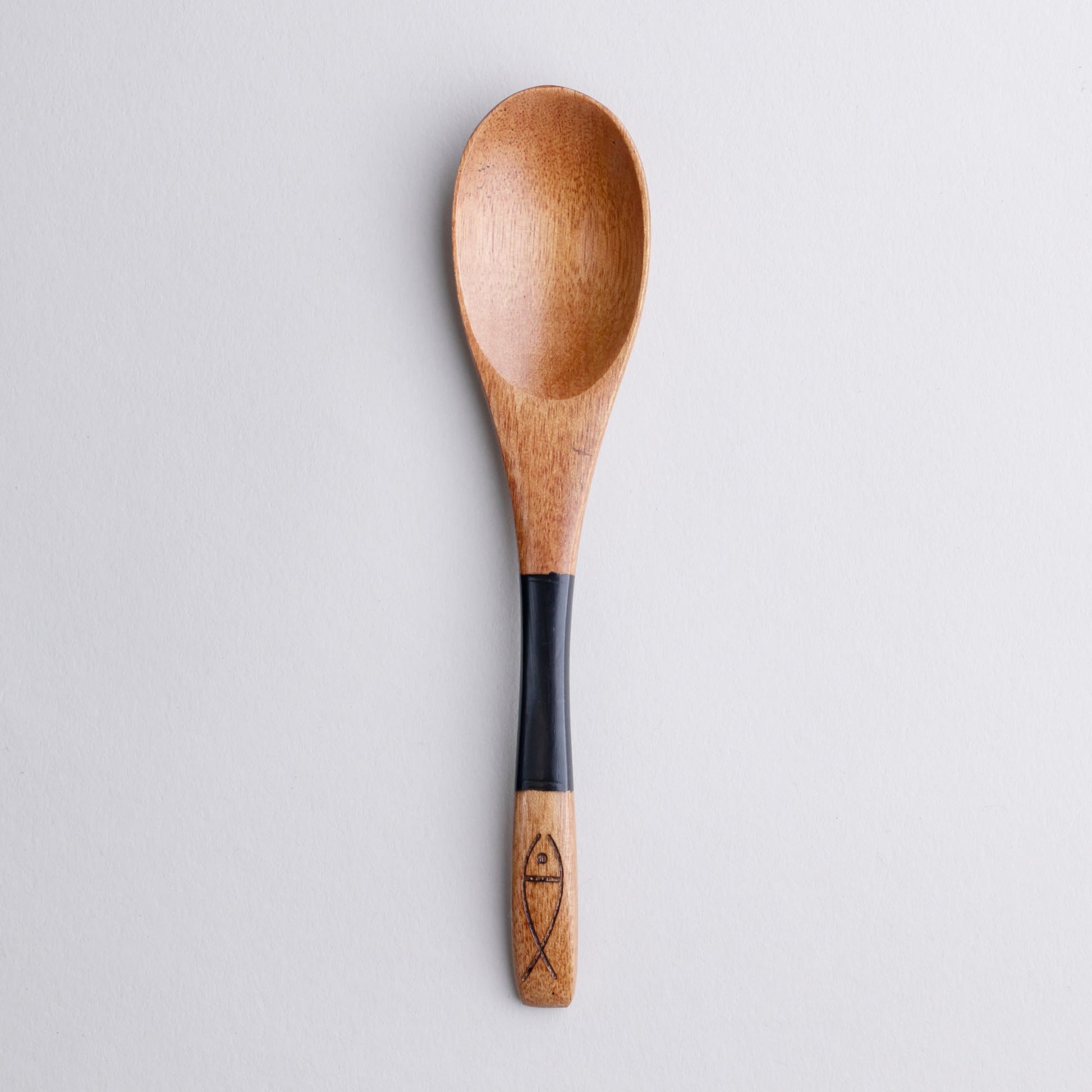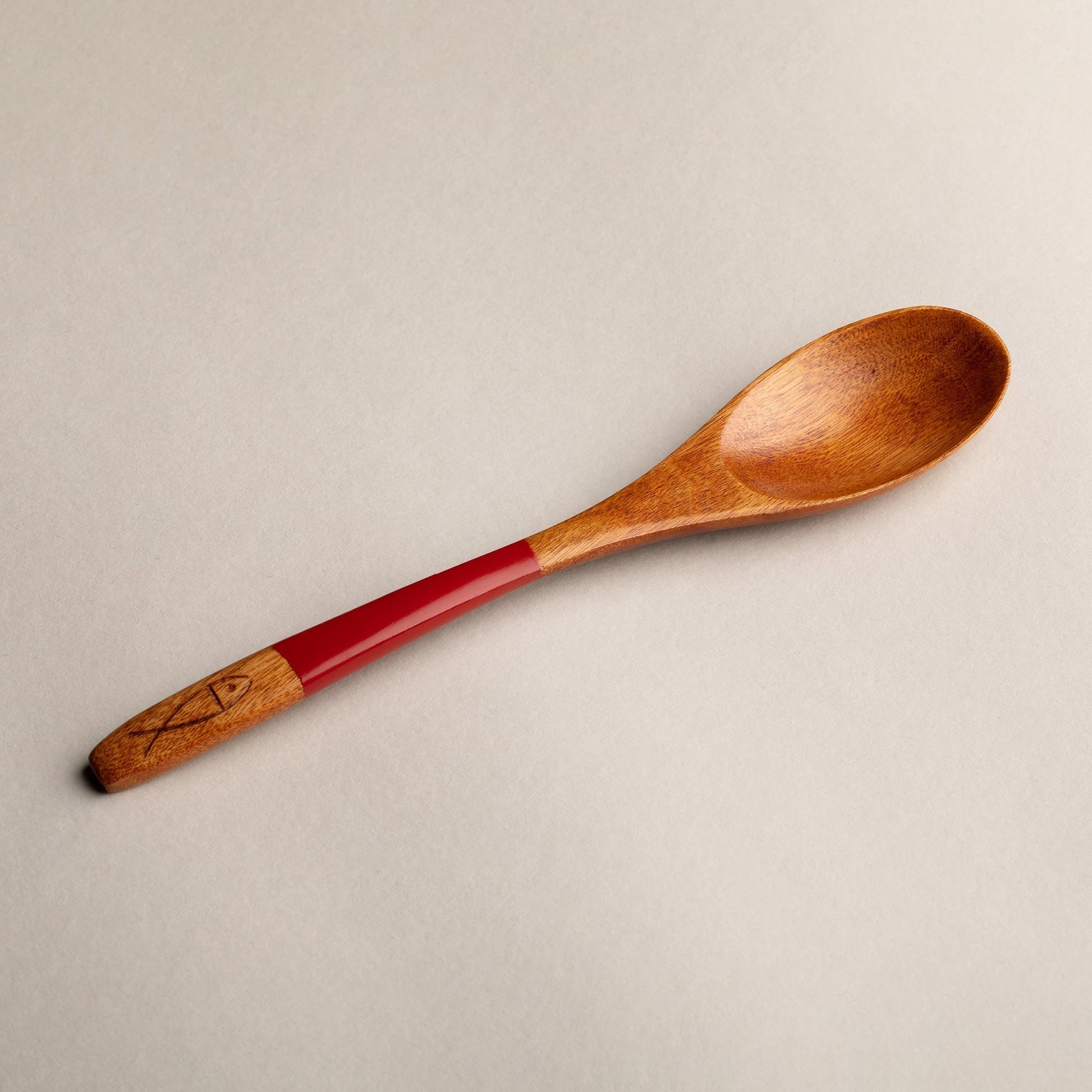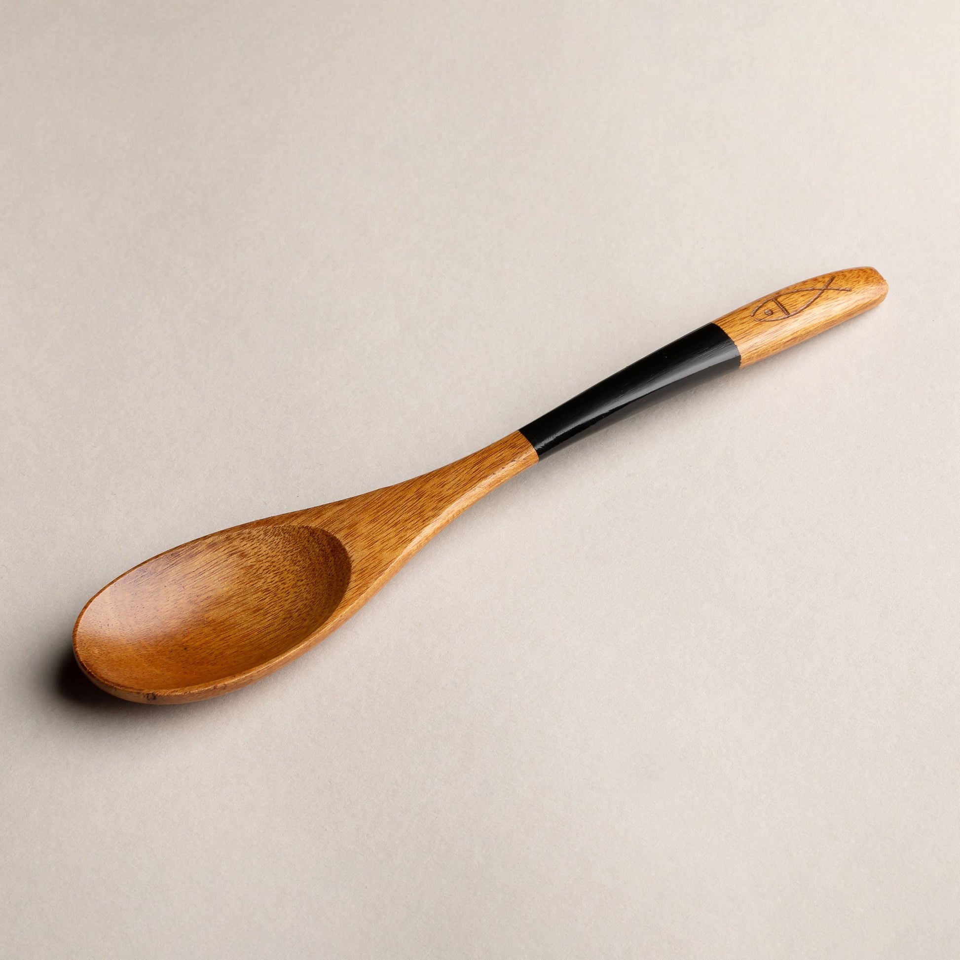 木製 塗分 スプーン 魚彫 大