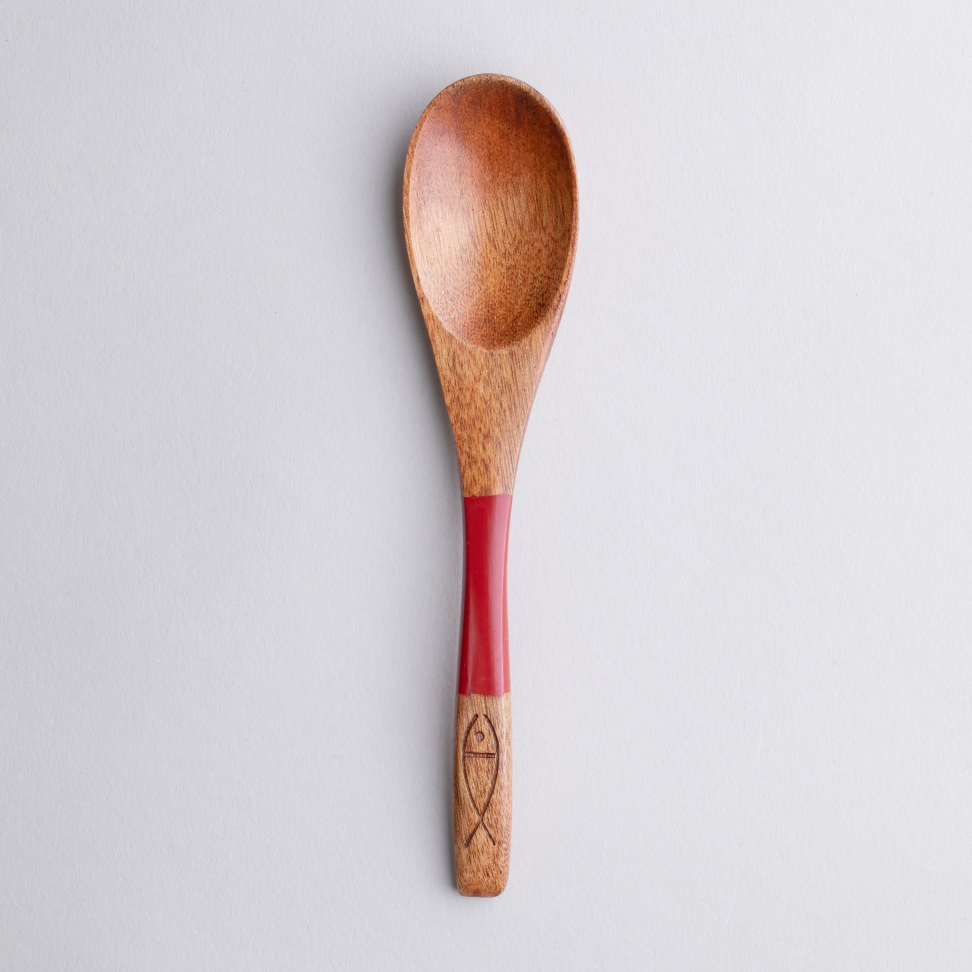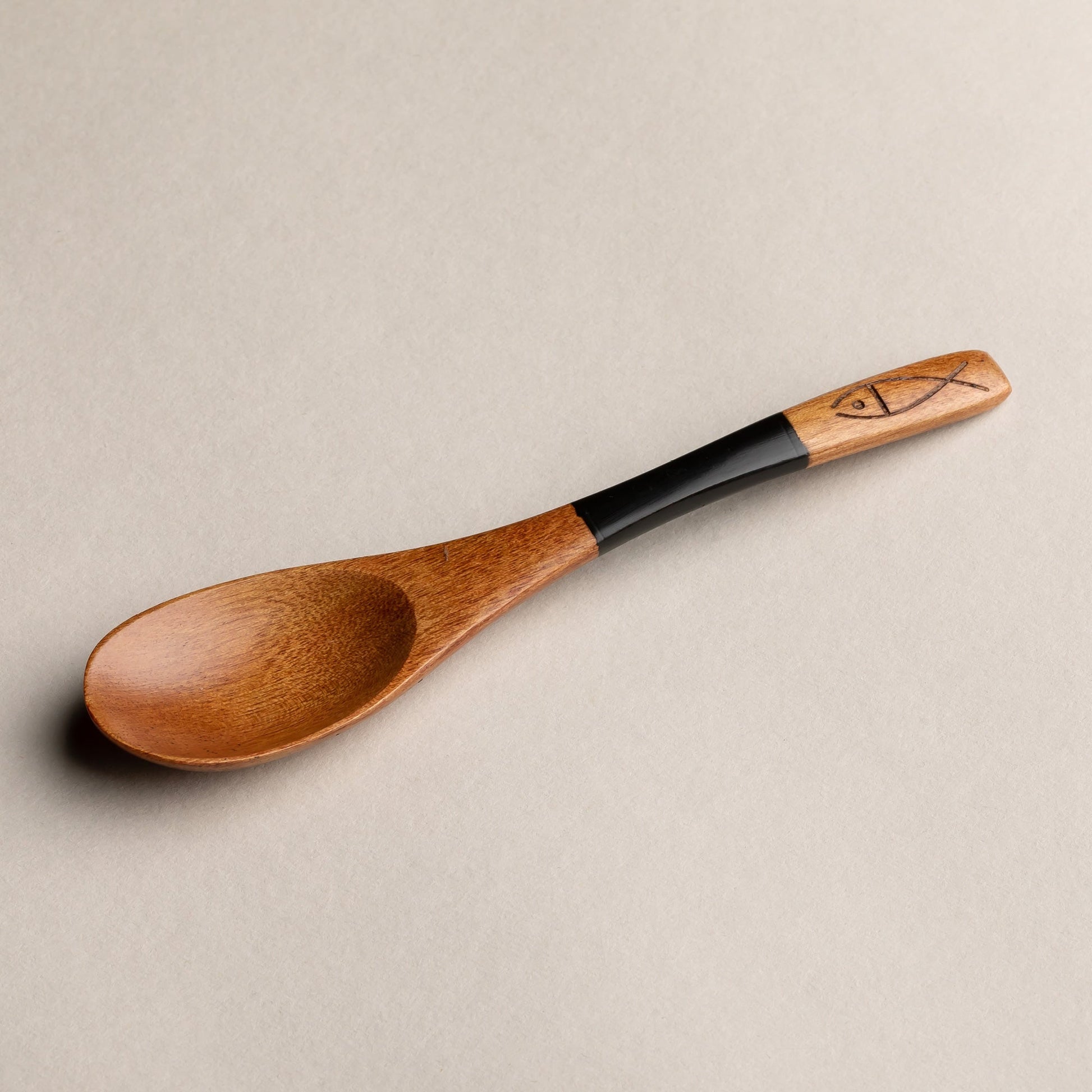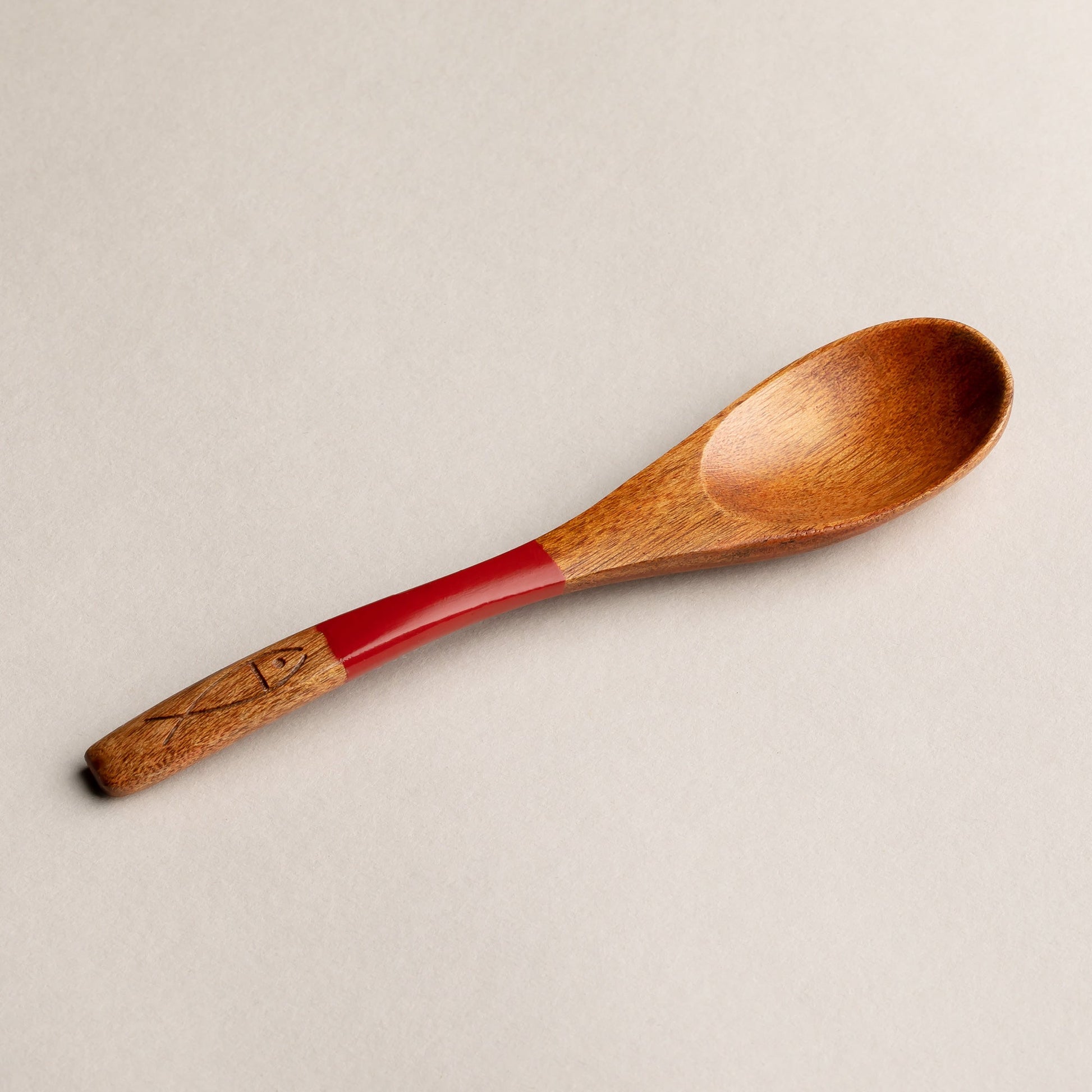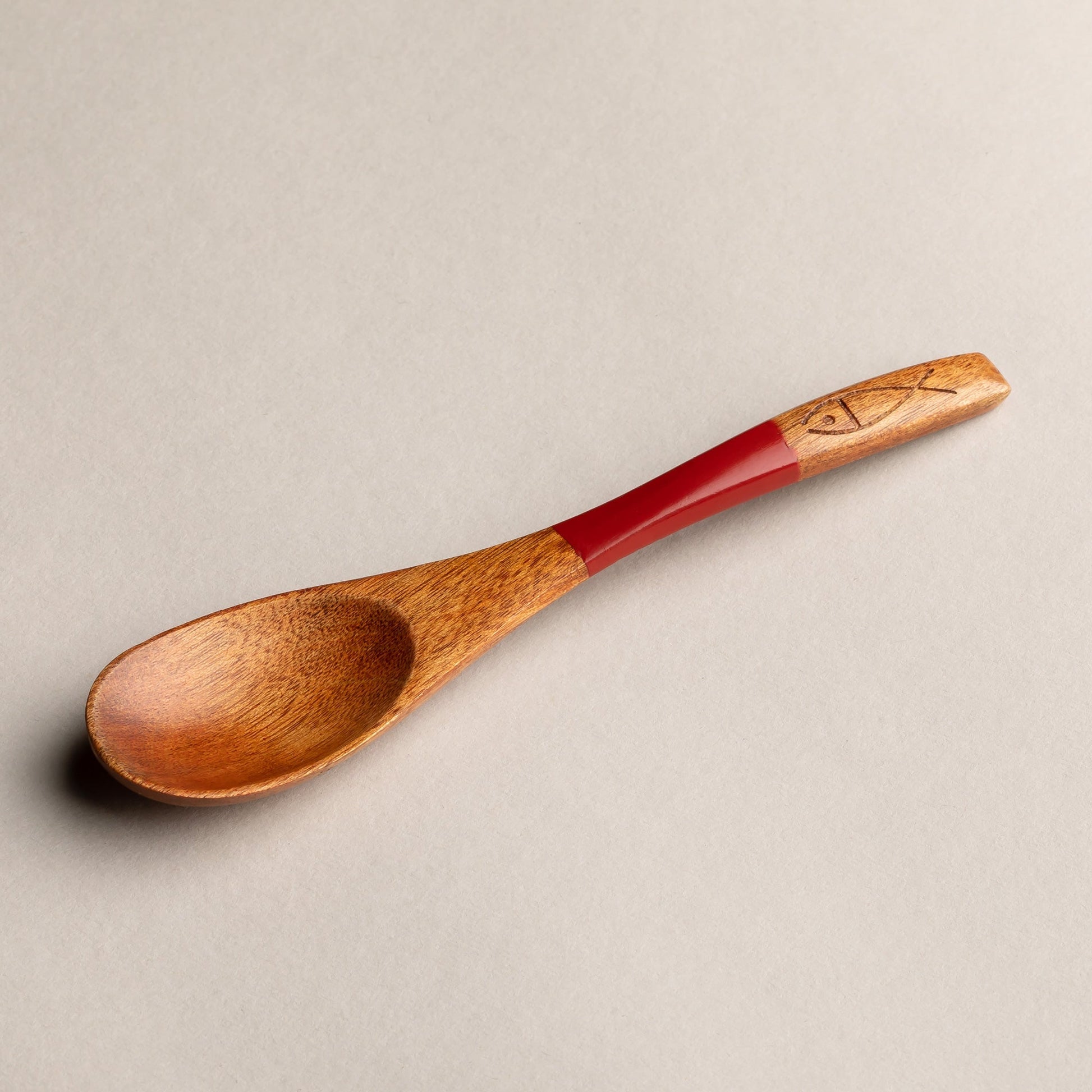 木製 塗分 スプーン 魚彫 大