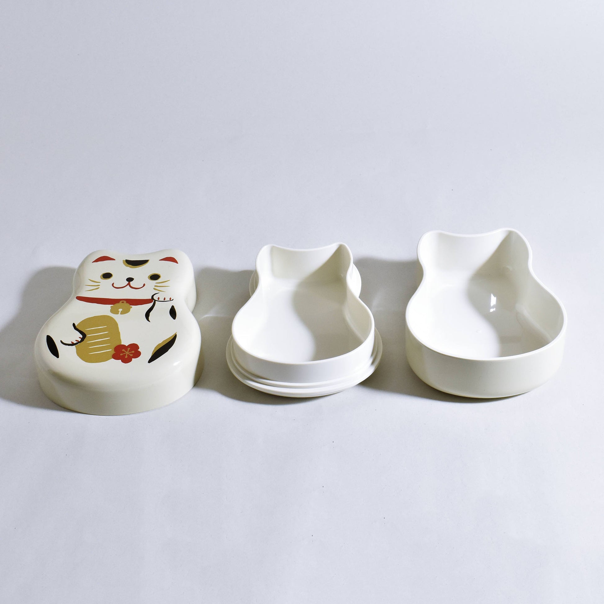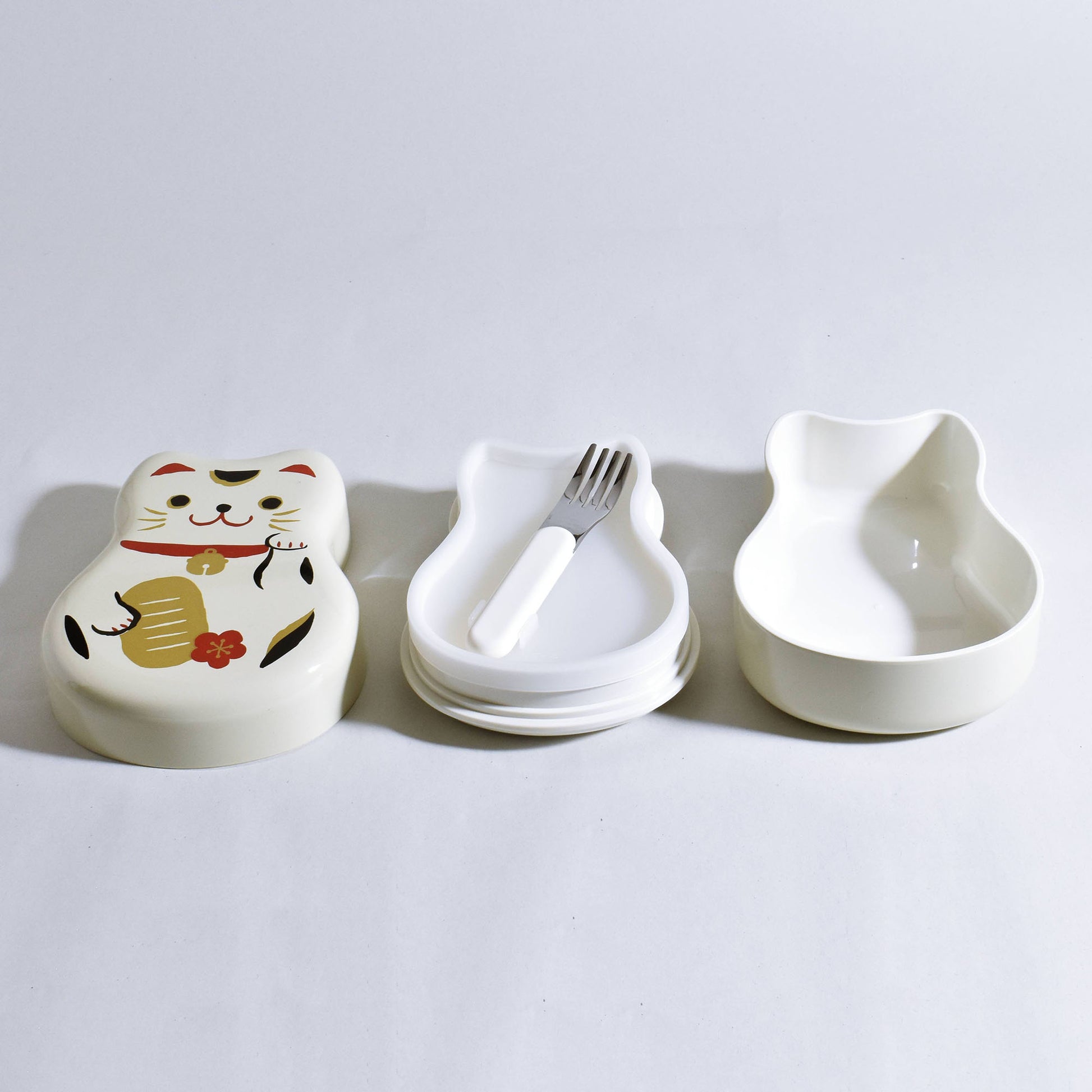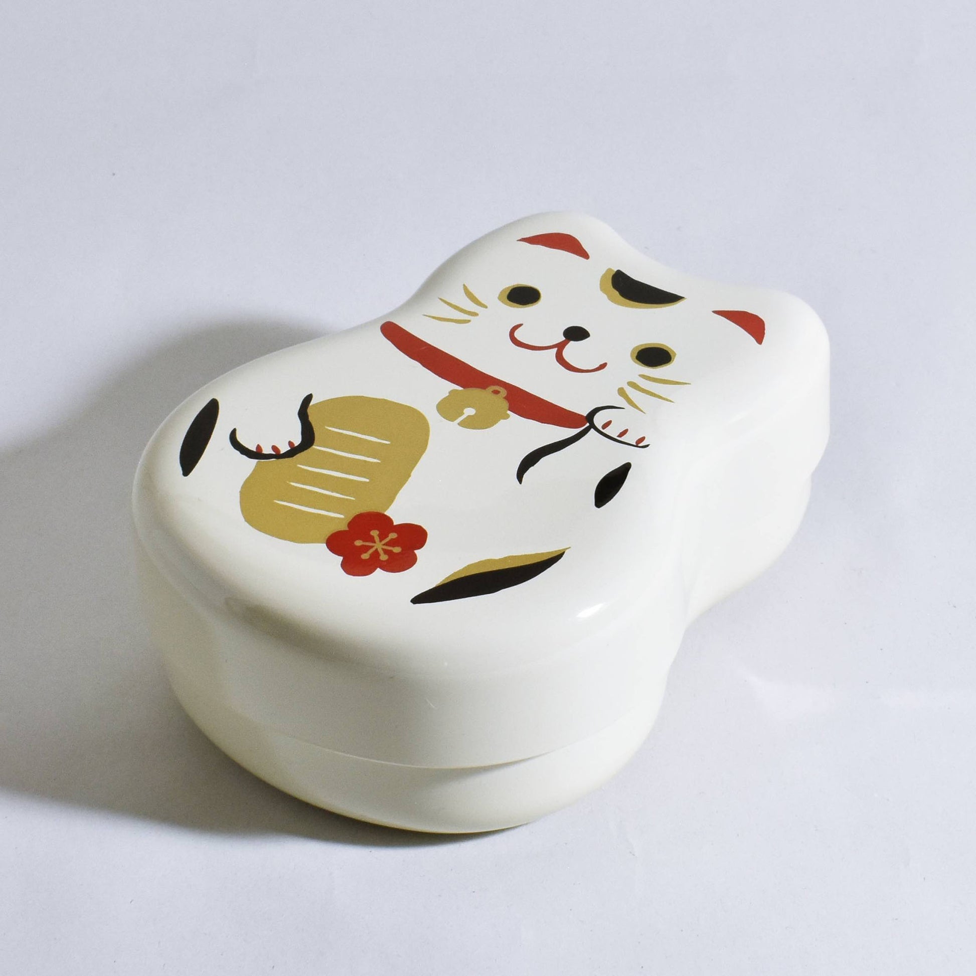 まねきねこ柄のユニークな弁当箱。シール蓋付きで、汁もれの心配が少なく安心です。